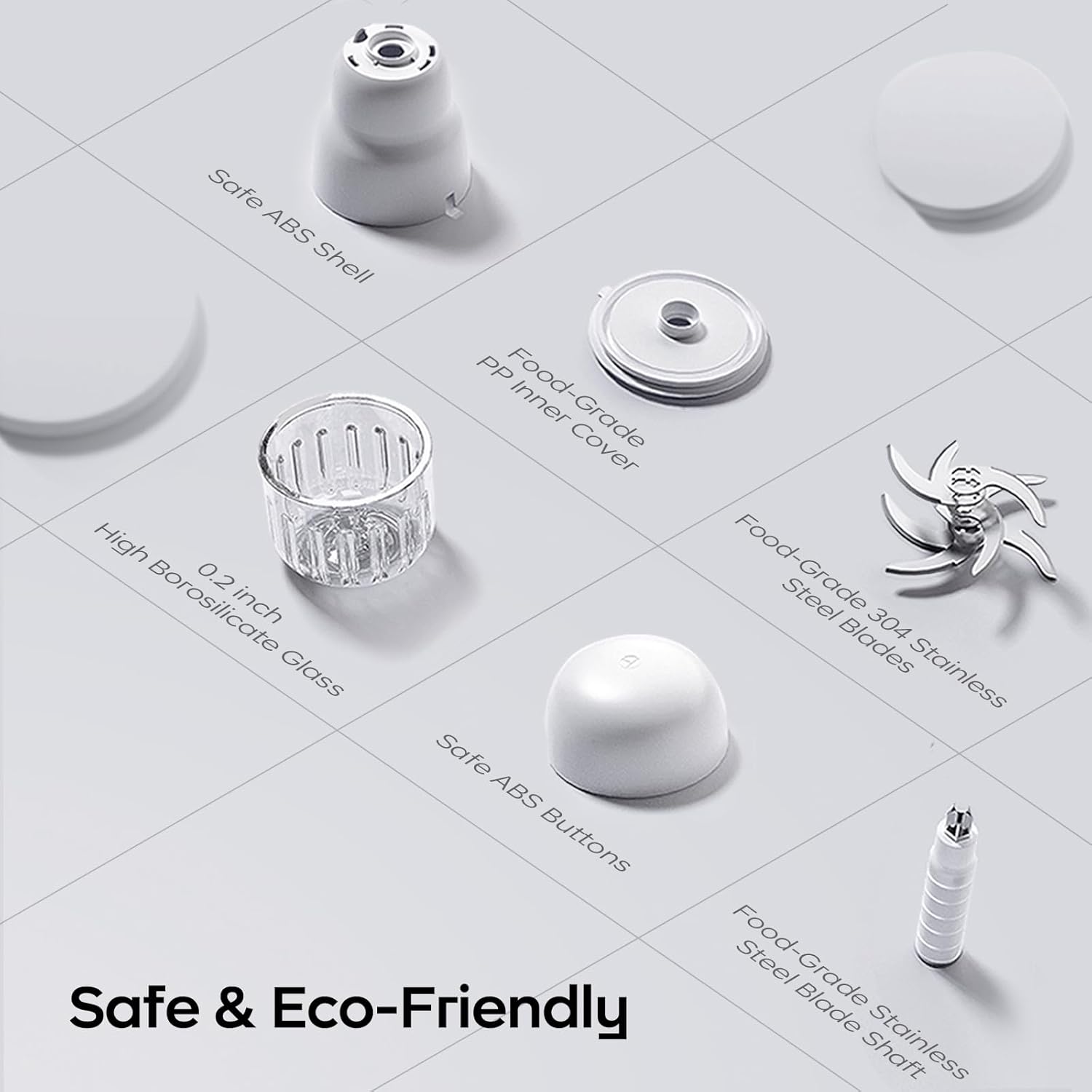 - ăPremium Safety & DesignăCrafted with food-grade materials for worry-free use: a durable glass bowl, stainless steel blades, and BPA-free PP plastic. The built-in safety lock and automatic shut-off feature (activates when tilted or detached) ensure maximum safety. The blade stays securely inside the cup during removal, preventing accidents. Its sleek, modern design adds a touch of elegance to your kitchen.