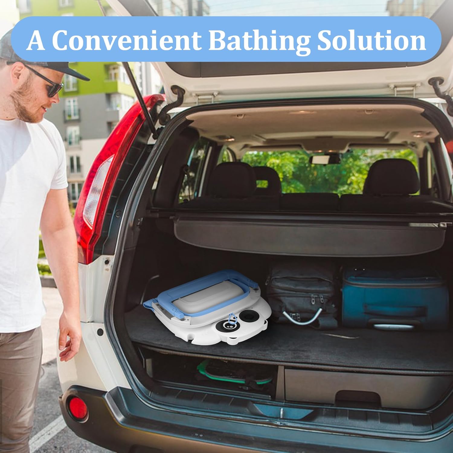 - Double-Fold & Detachable Leg Support: Our collapsible baby bathtub features an ingenious double-fold design, it even folds in half, folding the body into a square with a thickness of 4 inches. Convenient for storage and saving space!