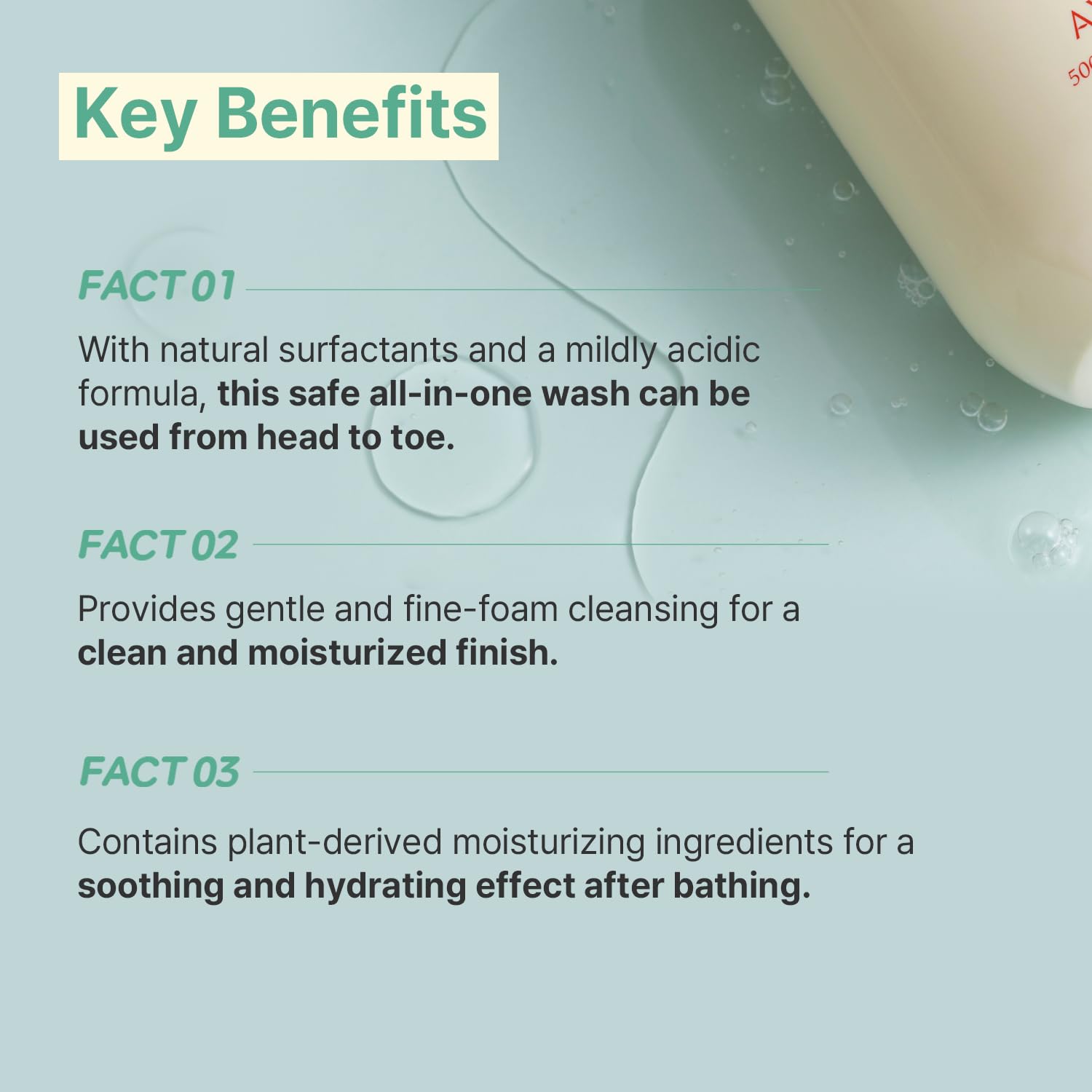 AVCA Baby & Kids All-in-One Shampoo & Wash for Sensitive Skin and Gentle Cleansing 500ml/16.90fl. oz.