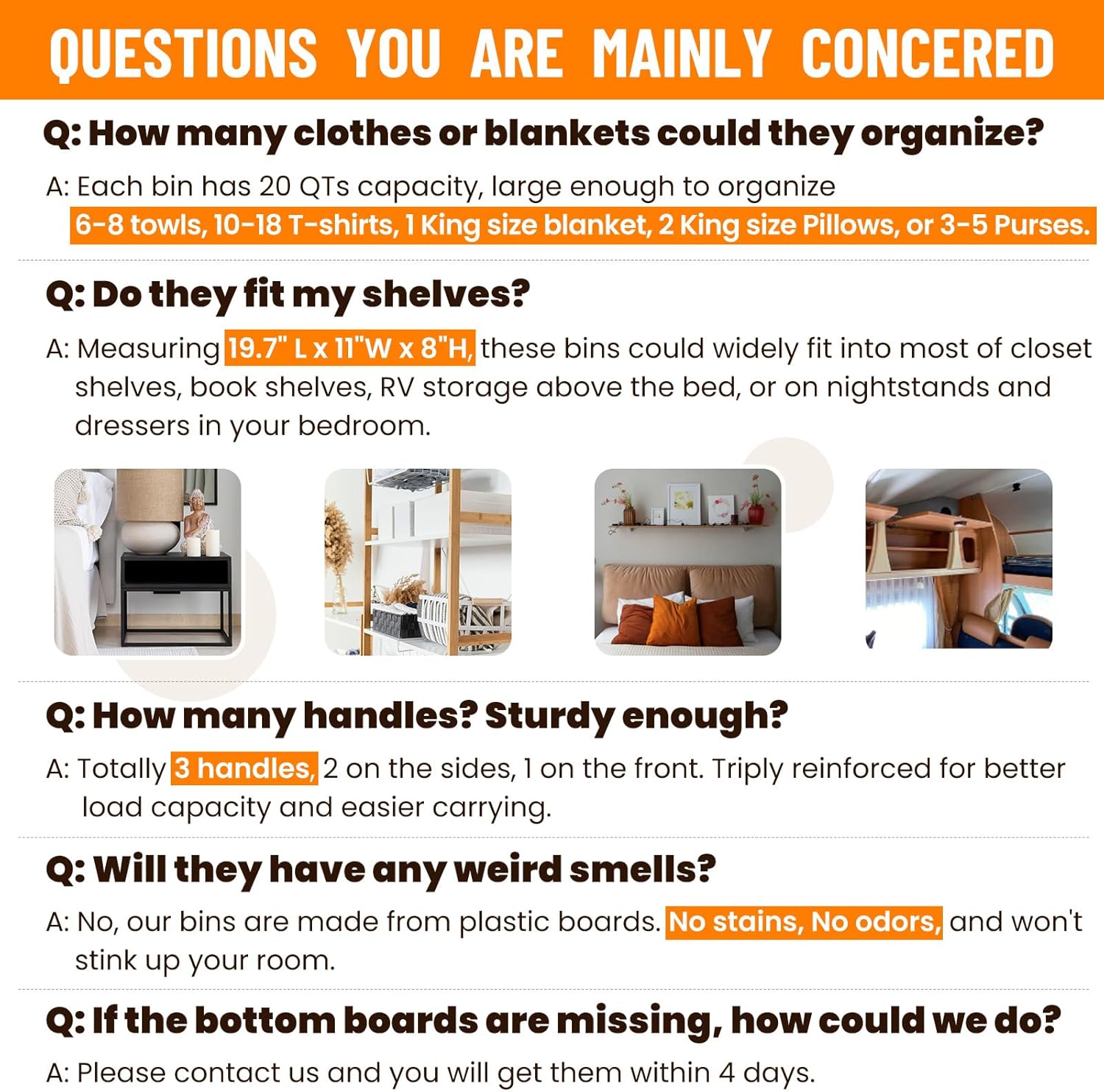 - γππππ ππΌπππ πΎππππΌπππ½πππππγMeasuring 19.7β (L) x 11β (W) x 8β (H/back) / 5.3β (H/front), these clothes storage bins could perfectly fit in shelves, closets, under bed, college dorm rooms, RV storage above the bed, nightstands, or on dressers, offering versatile organization and storage solutions for any rooms.