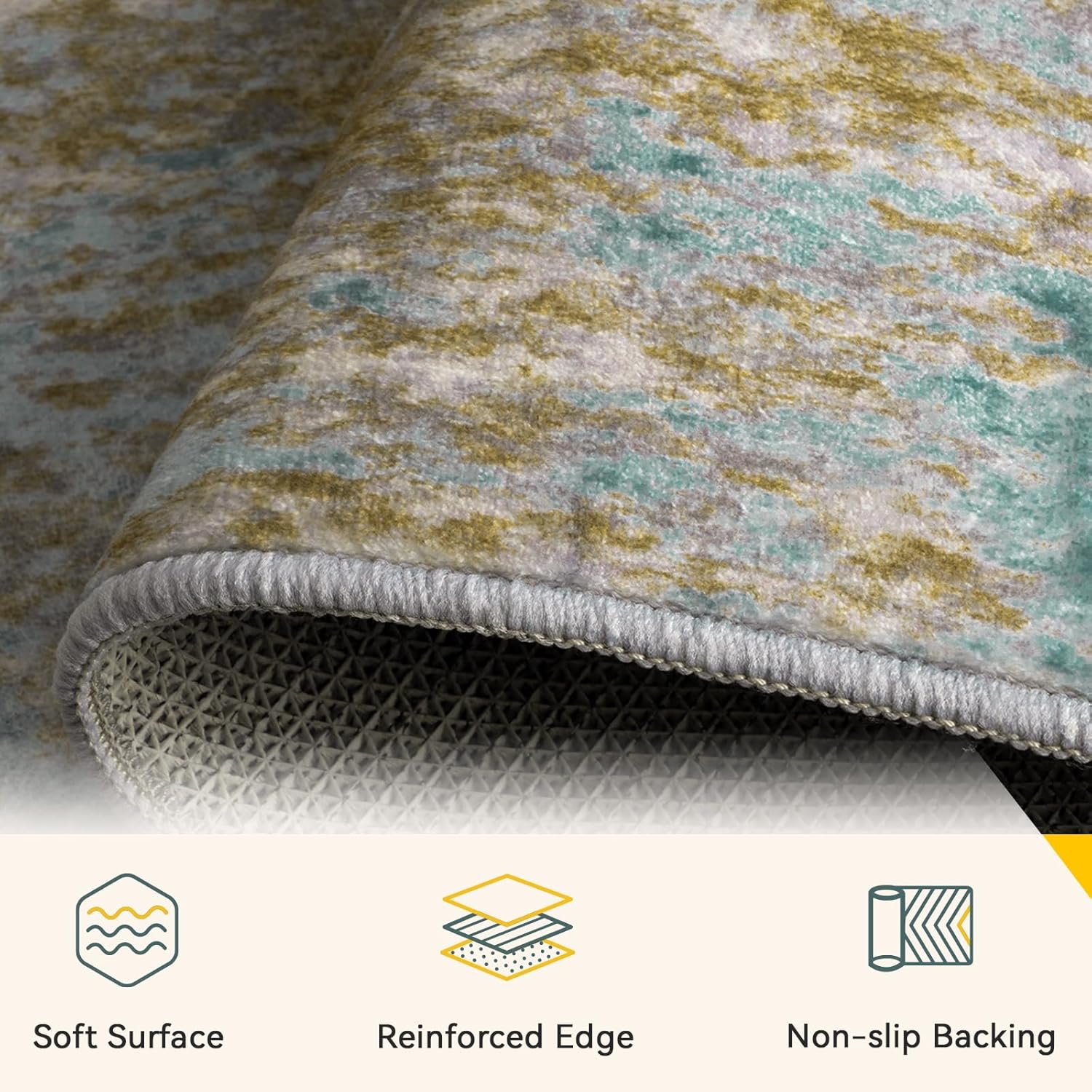Washable Area Rugs 6'x9' Non-Slip Modern Abstract Soft for Living Room Entryway Bedroom Nursery, Print Pattern, Teal Blue Taupe
