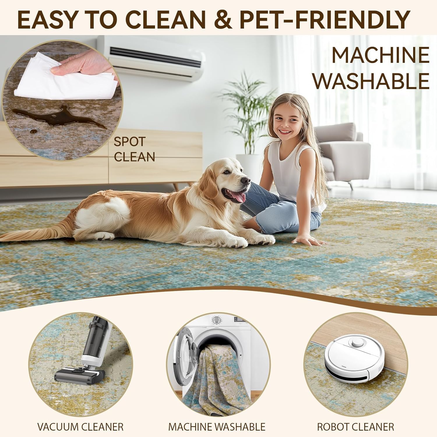 - Tides Series – Effortless style that flows with your life.This modern machine-washable non-slip rug features reinforced edges and a low-pile design that resists dirt. Its water-repellent surface makes spills easy to clean - liquids bead up for quick wiping. Simply machine wash in cold water (no bleach) to refresh. The non-slip backing keeps it securely in place. A perfect blend of function and contemporary design for active homes.