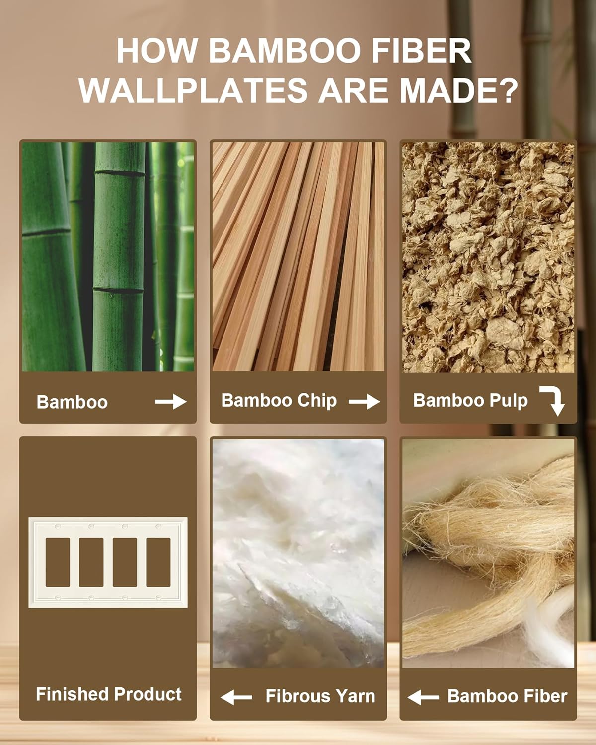 - Natural Bamboo Fiber Material - The wall plate covers are made from sustainable and environmentally friendly bamboo fiber, much thicker and more robust than plastic covers, easier to clean. Resistant to heat, moisture, and corrosion, ensuring it remain a stunning addition to your home for years to come.