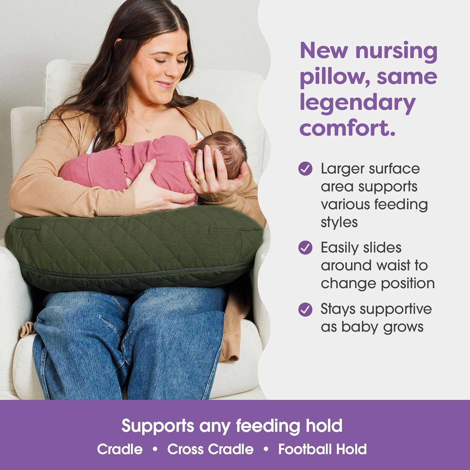 - 35 Years of Confidence: Better connecting babies and moms since 1989 with breastfeeding pillows, baby carriers and other baby essentials so you can worry less and enjoy more; The first brand certified by the JPMA in the Nursing Pillow category for meeting the highest standards in safety, performance and quality; Meets and exceeds standards for ASTM F3669 Consumer Safety Specification for Nursing Pillows and 16 CFR 1242 safety standard for nursing pillows, so you can have peace of mind