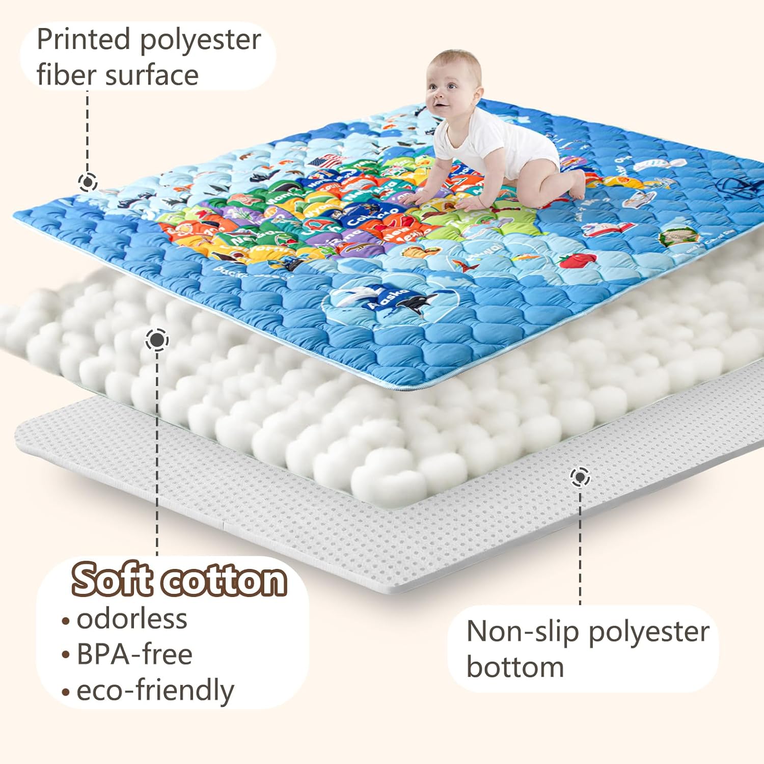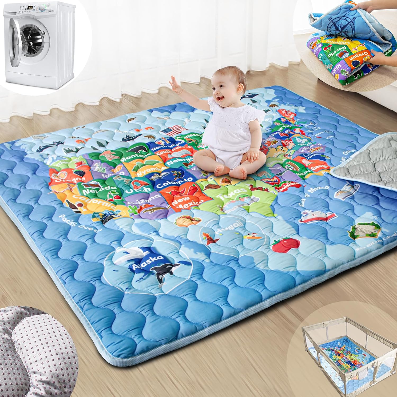 Baby Play Mats for Floor, 71”x59” Upgraded Thickness & Larger Super Soft Playmat for Babies and Toddlers, Foldable Washable, Upgrade Anti-Slip Crawling Mat for Playpen(Map)