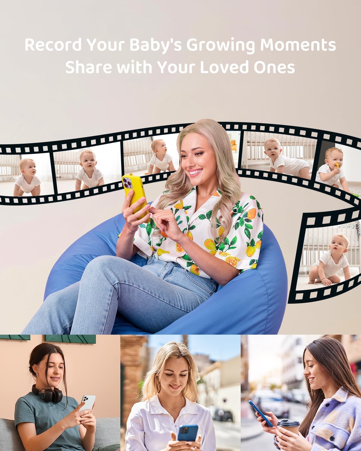 - Remote Pan-Tilt-Zoom:The baby monitor with camera and night vision cover every angle with its 355 degree pan and 60 degree tilt and digital 4 X zoom in/out feature, you can remotely watch your baby more closely via your cellphone App and LCD screen