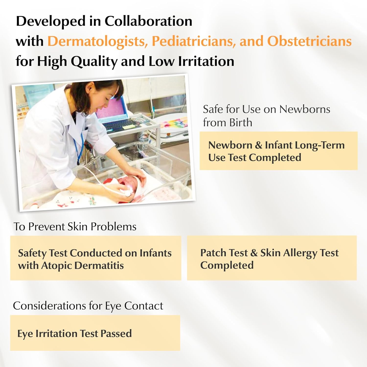- Hypoallergenic Formula: Free from fragrances, parabens, coloring, petroleum surfactants, alcohol, and mineral oils, ensuring a safe and irritation-free experience for your baby’s sensitive skin.