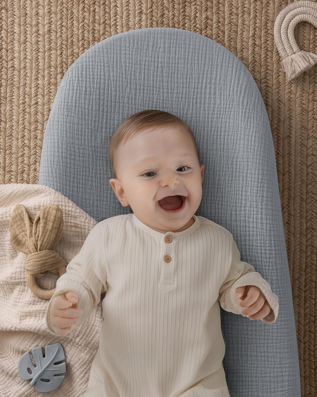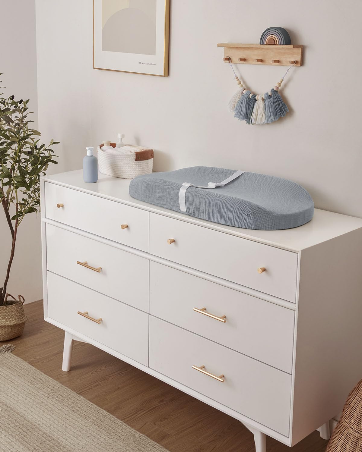 - Design Your Dream Nursery: Our muslin baby changing pad in in neutral Gray brings a soothing, timeless charm to your nursery. It's the first choice for modern parents, an unforgettable unisex baby shower gift that new parents will love