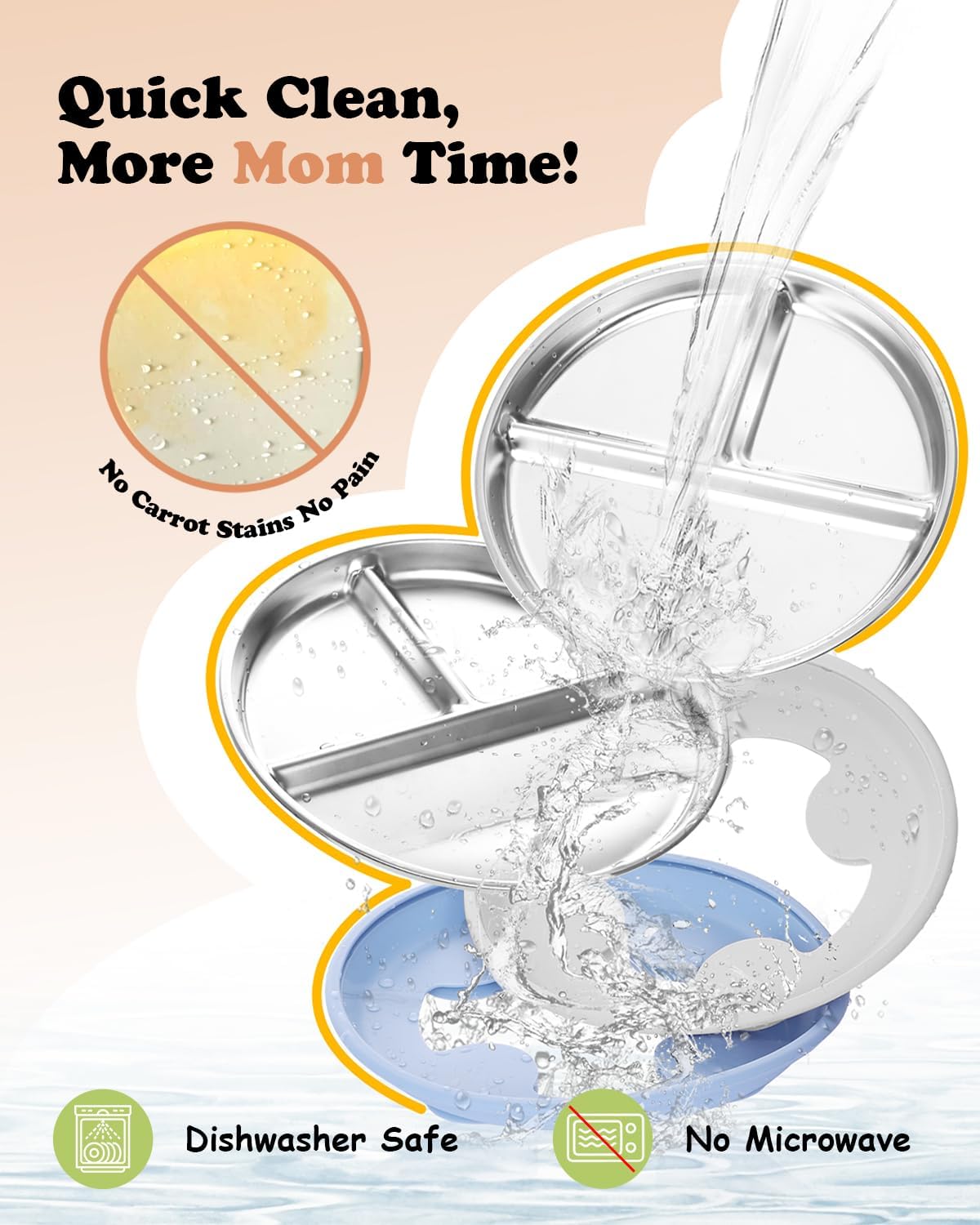 - Hassle-Free Cleaning: Resistant to food stains like carrots, the smooth stainless steel surface is easy to clean. Both the toddler plate and silicone suction sleeve are dishwasher-safe, making cleanup quick and stress-free for busy parents