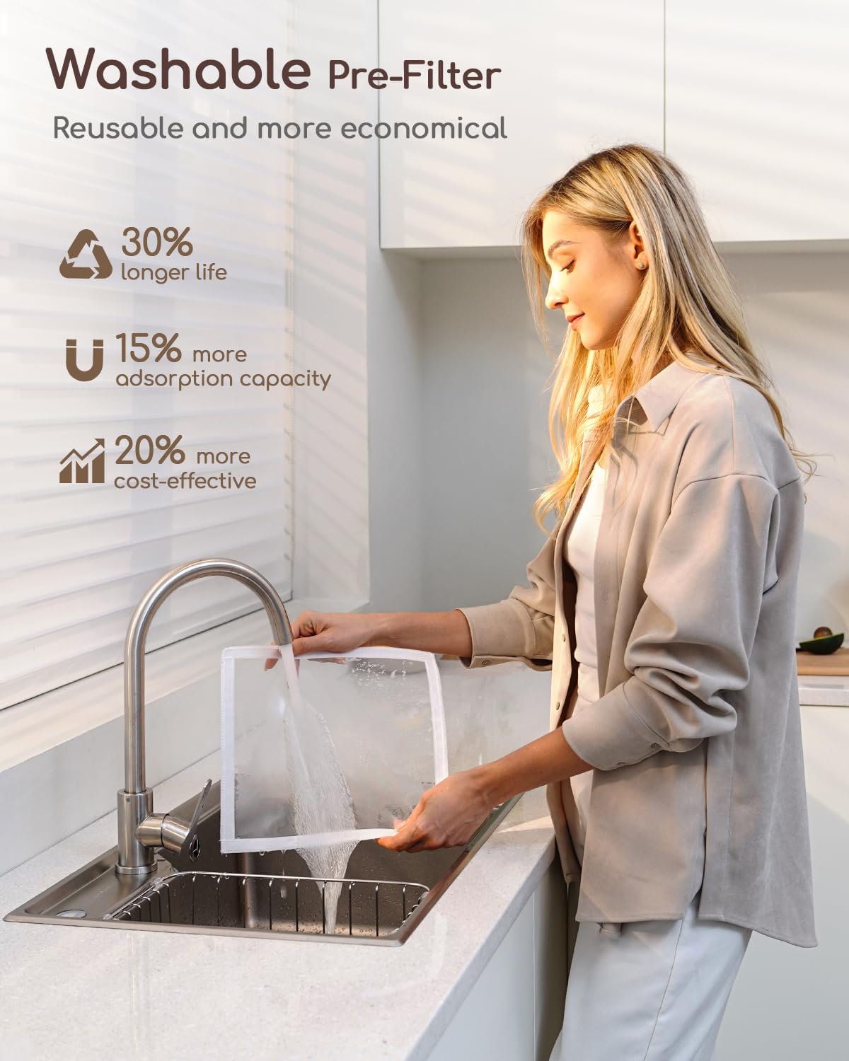 - Pet-Friendly 4-Layer Filtration System: Among its components, the washable pre-filter (with a service life of 6-12 months) can reduce replacement costs by 30% — it effortlessly traps pet hair and debris, making it a highly practical choice for home use.