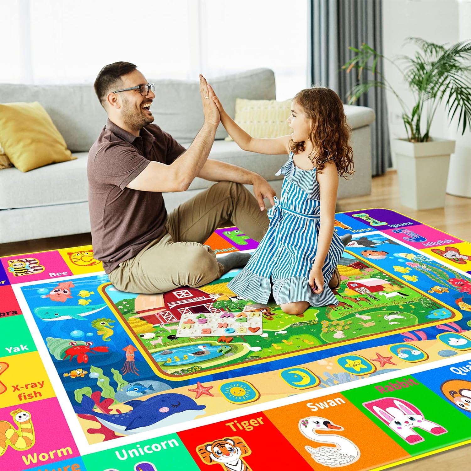 - Fun & Educational Design: Designed to engage and educate, this playroom rug introduces children to a variety of topics, including 26 alphabet and corresponding animals, farm and sea scenes, and animals. Its vibrant, eye-catching illustrations stimulate your childβs cognitive development and foster early learning through play, making it an enjoyable experience for both fun and education.