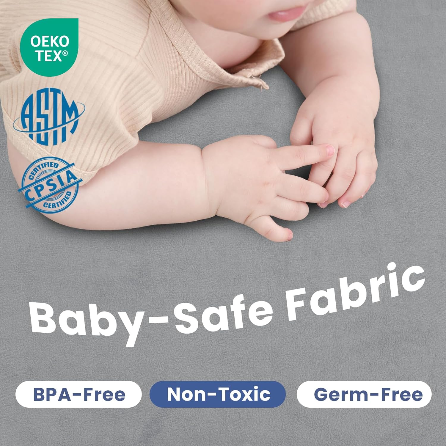 - 【SOFT TOUCH&THICK PLAYMAT】:Our nursery rug features high-quality, non-toxic 1.3-inch thick slow-rebound memory foam and is certified by OEKO-TEX fabric for added peace of mind. Made from non-shedding 100% coral velvet, it ensures a safe and worry-free play area for your little ones. The skin-friendly material provides a comfortable touch, while the non-slip design creates a secure space for play. This design also enhances longevity, maintains aesthetic appeal, and protects your floors, offering a comfortable stepping surface