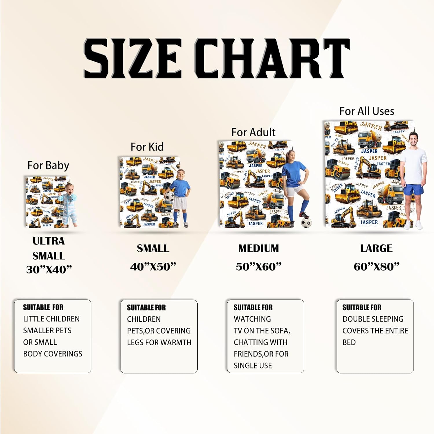 Ship Next Day, Personalized Truck Blanket - Printed in USA, Custom Name Blankets for Kids with Engineering Vehicle, Home Bedding Bed Decor, Fun Birthday Gift for Boys&Girls Women Man
