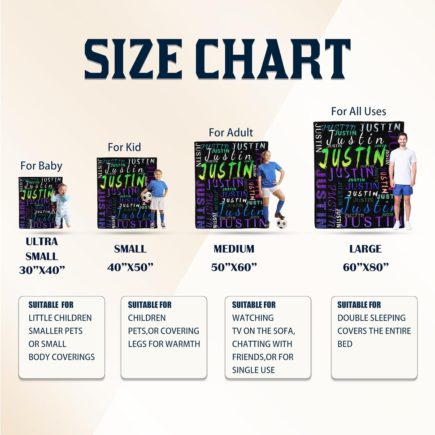 - Multiple Sizes & Colors Baby Blanket -- custom name blanket are available in 5 colors and 4 sizes: 30"x40" , 40"x50" , 50"x60" (single beds), 60"x80" (family movie nights).Select your loved one’s favorite shade to create a treasured keepsake that infuses their world with color. Thoughtfully crafted for both gifting and everyday cuddles, these blankets grow with your child while keeping memories vivid wash after wash.