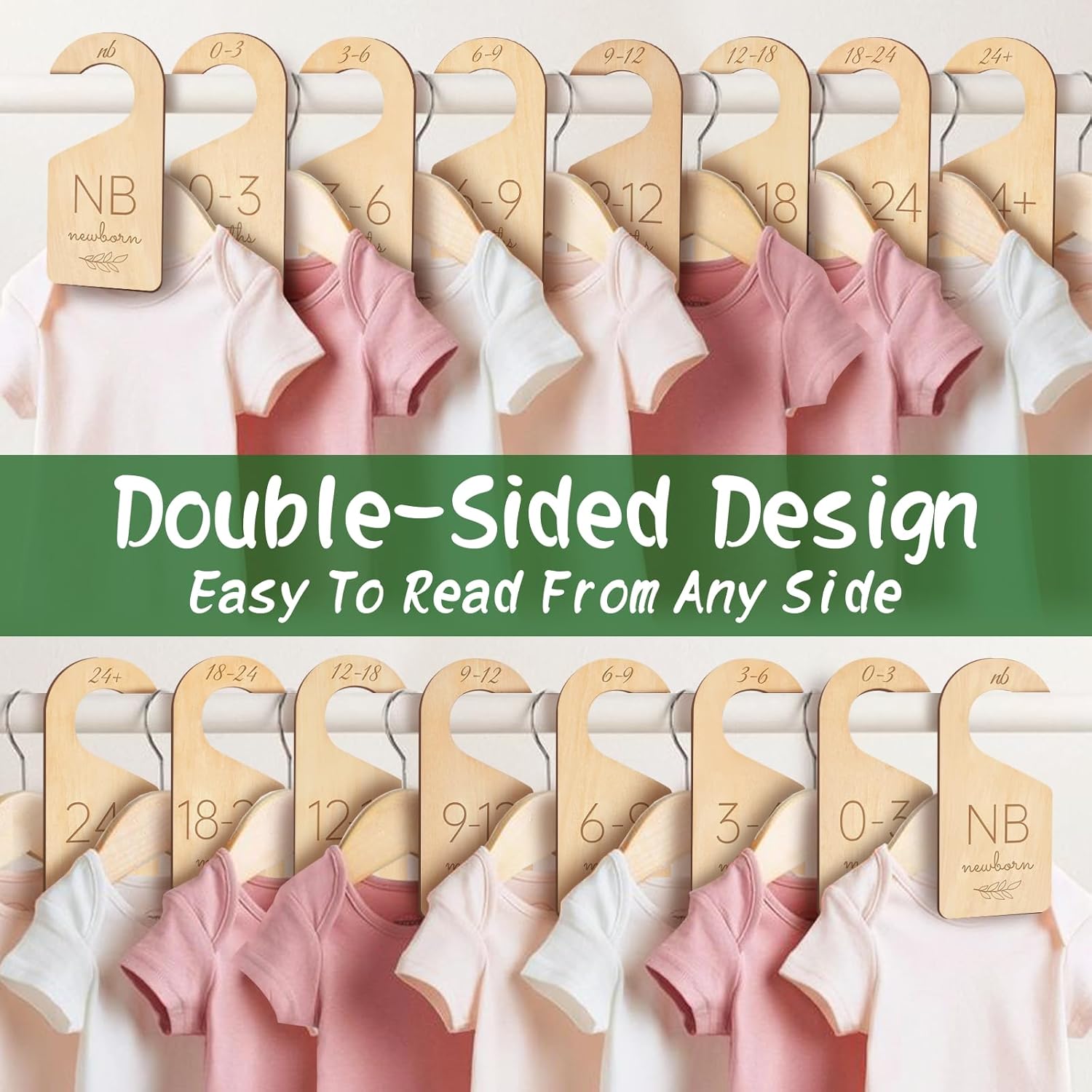 Wooden Baby Closet Dividers - 8 Pcs Double-Sided Design for Newborn Nursery Room Wardrobe Storage by Months Size - Perfect Toddler Clothes Organizer