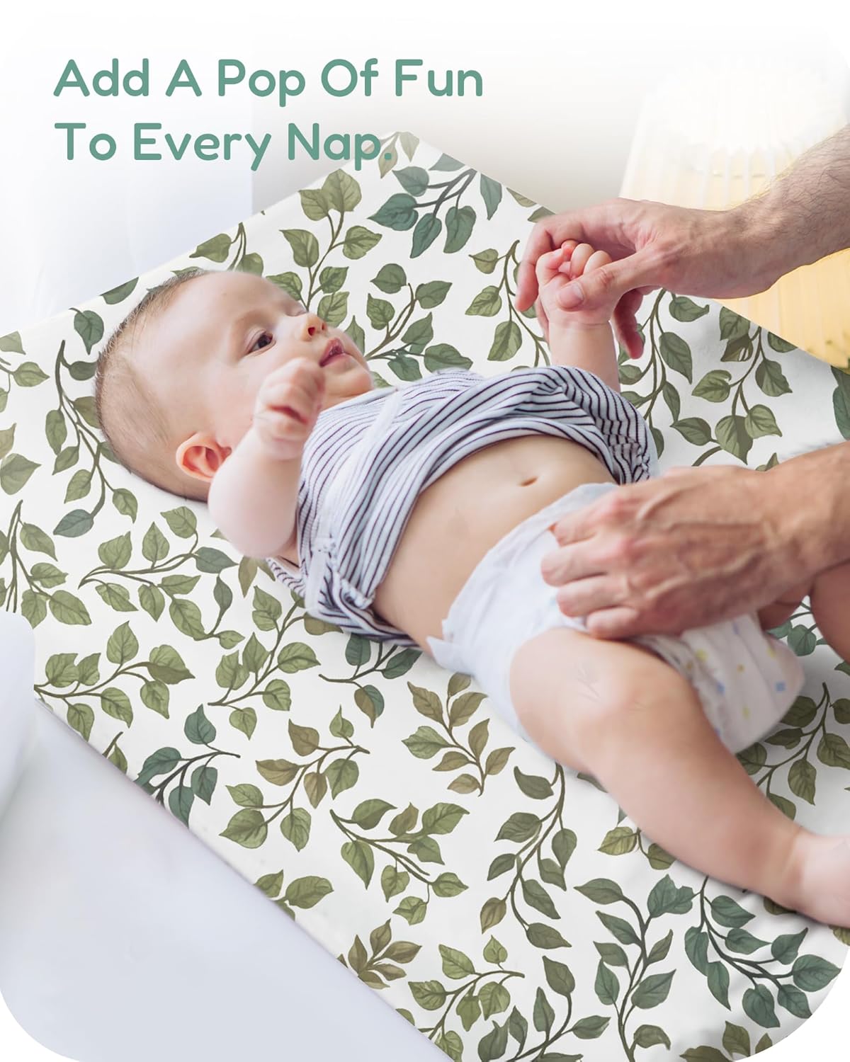 - Secure 360-Degree Elastic Fit: Designed with fully encased 360-degree elastic, this baby changing pad cover fits snugly around your changing pad, preventing slipping or shifting during diaper changes, providing a stable and secure surface for your baby.
