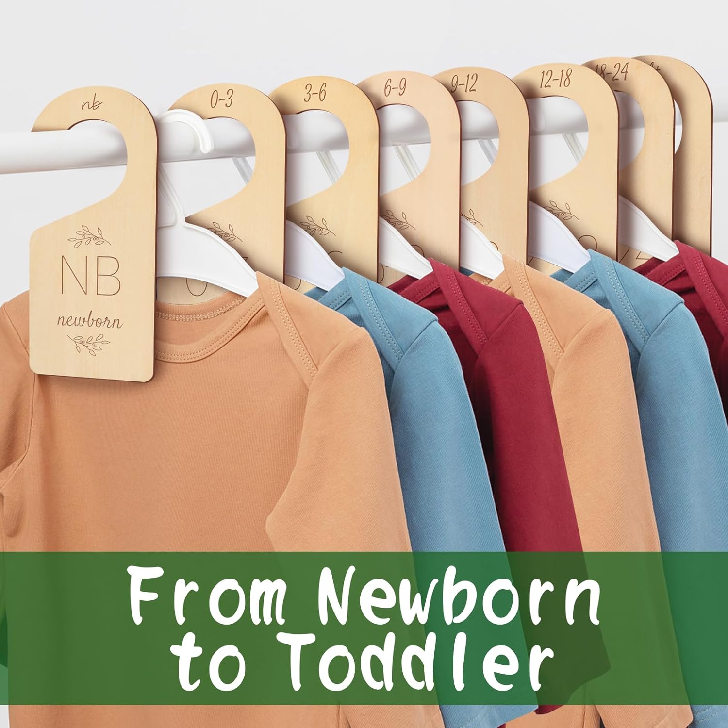 - Adorable Set of 8 Dividers: Our baby closet organizer includes 8 cute dividers for newborn, 0-3, 3-6, 6-9, 9-12, 12-18, 18-24 months, and toddler. Organize your baby's clothes into months as he or she grows. Not only add a touch of charm to the nursery but also make your daily routine a whole lot smoother