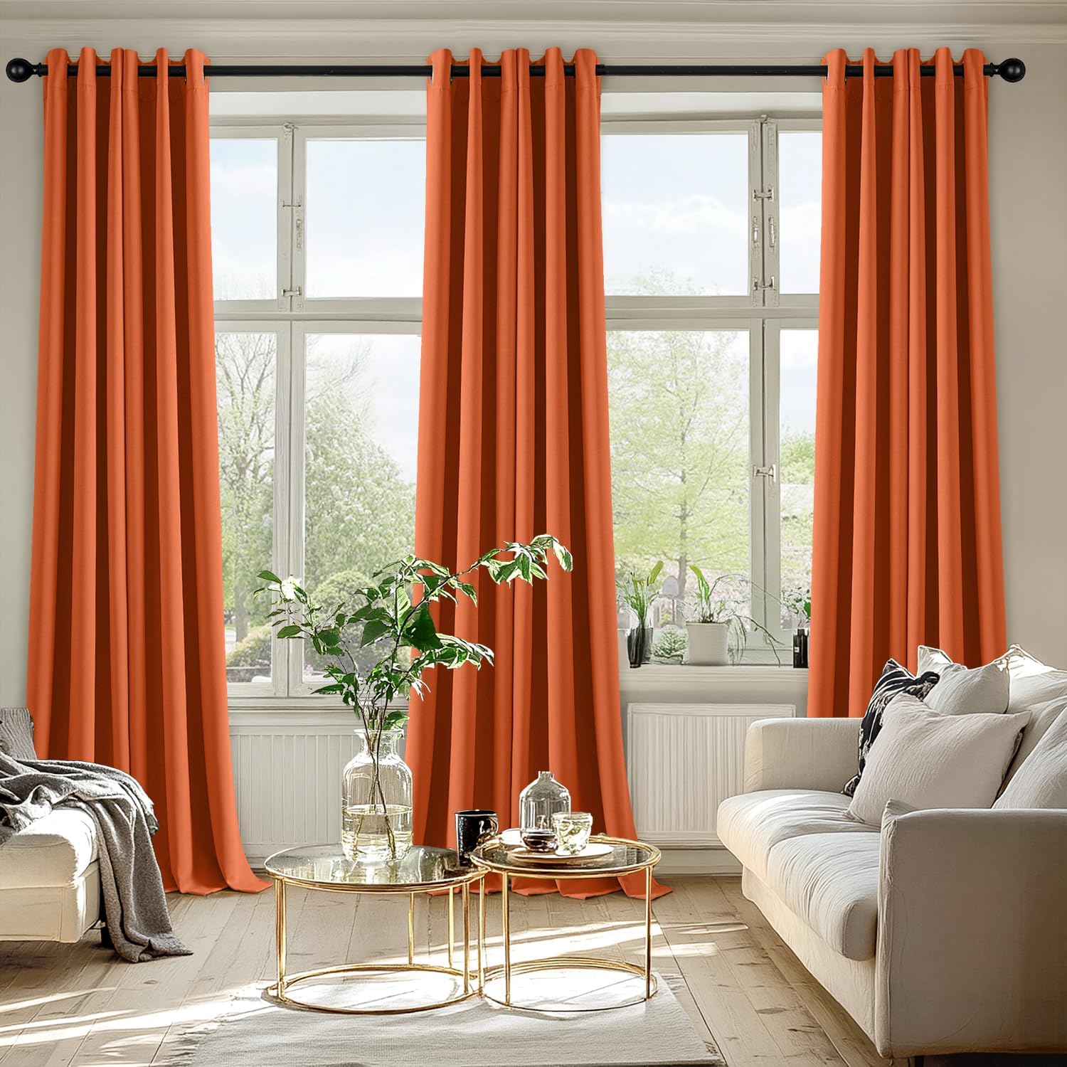 MIULEE Orange Blackout Curtains for Bedroom Living Room 96 Inches Long 2 Panels, Thermal Insulated Room Darkening Fall Drapes Solid Grommet Noise Reduction Light Blocking Window Treatments 40x96 Inch