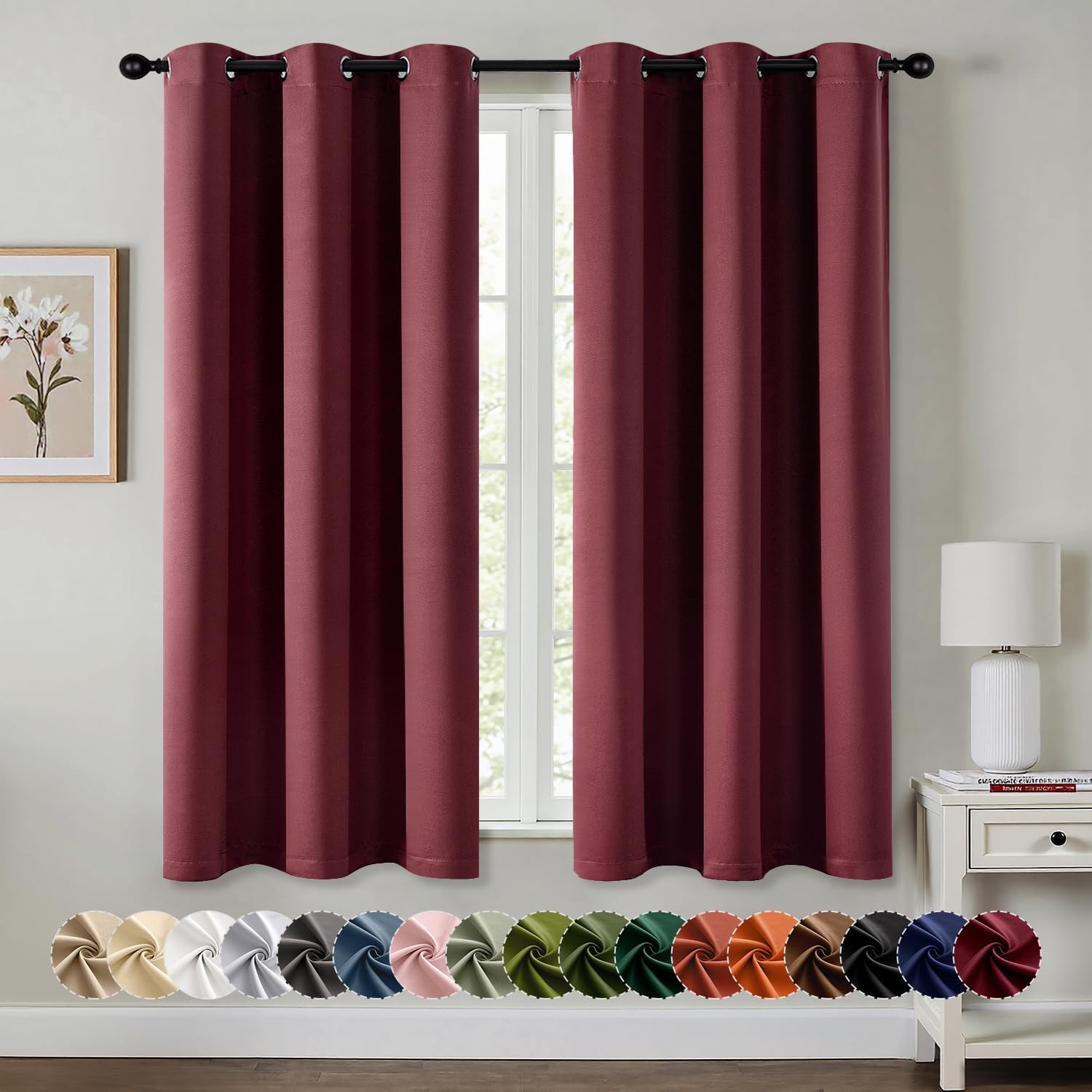 MIULEE Burgundy Red Blackout Curtains for Bedroom Living Room 63 Inches Long 2 Panels, Thermal Insulated Room Darkening Drapes Solid Grommet Top Noise Reduction Christmas Window Treatments 40x63 Inch