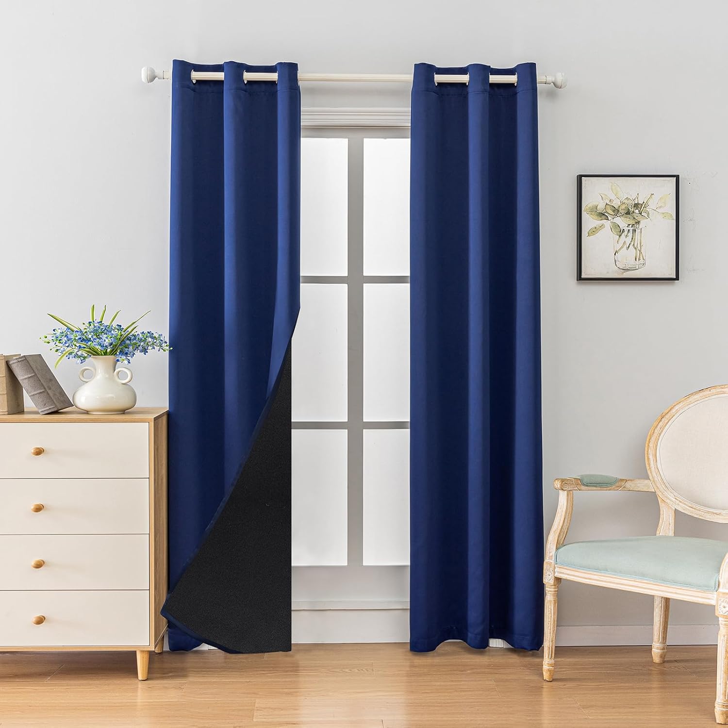 Anytime 100% Blackout Curtain Set, Thermal Insulated & Energy Efficiency Window Draperies for Guest Room, Full Shading Panels for Shift Worker and Light Sleepers(Navy Blue, 2 Panels, 37W x 84L)