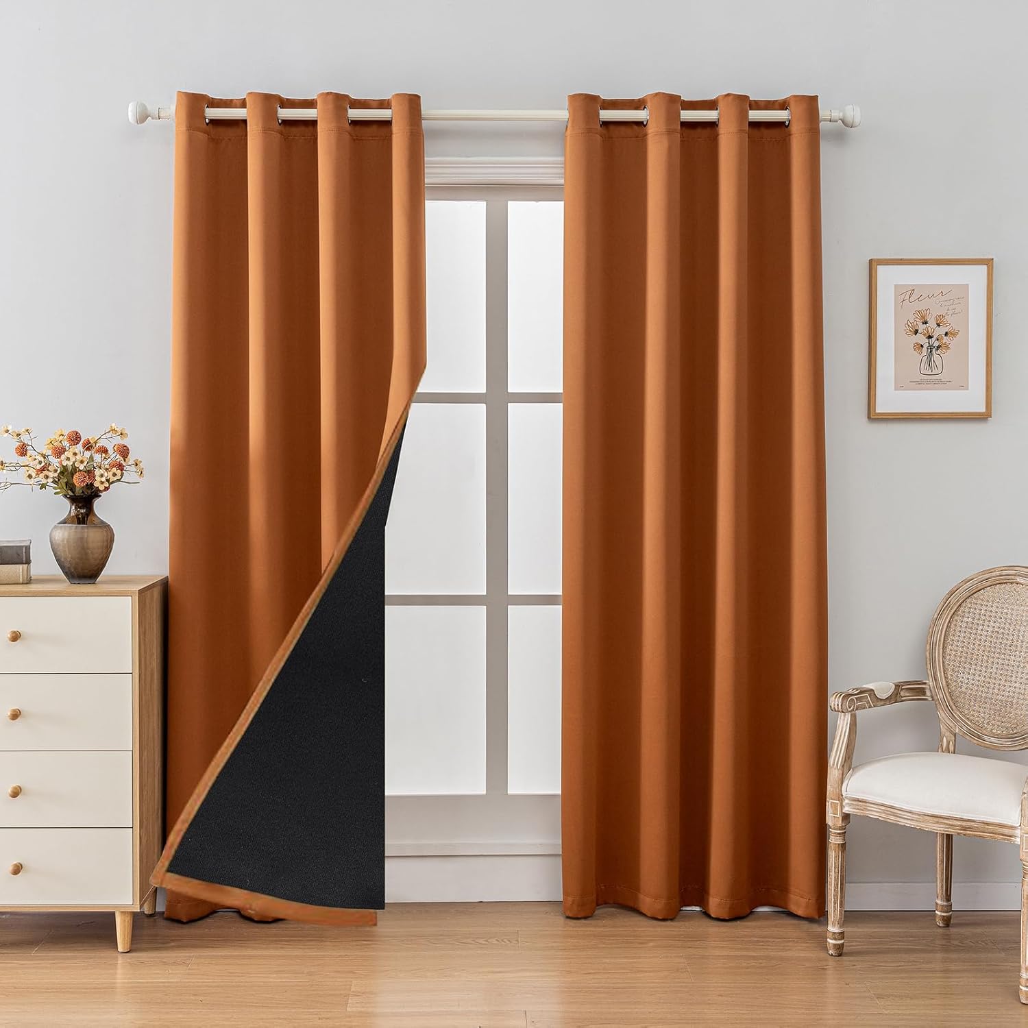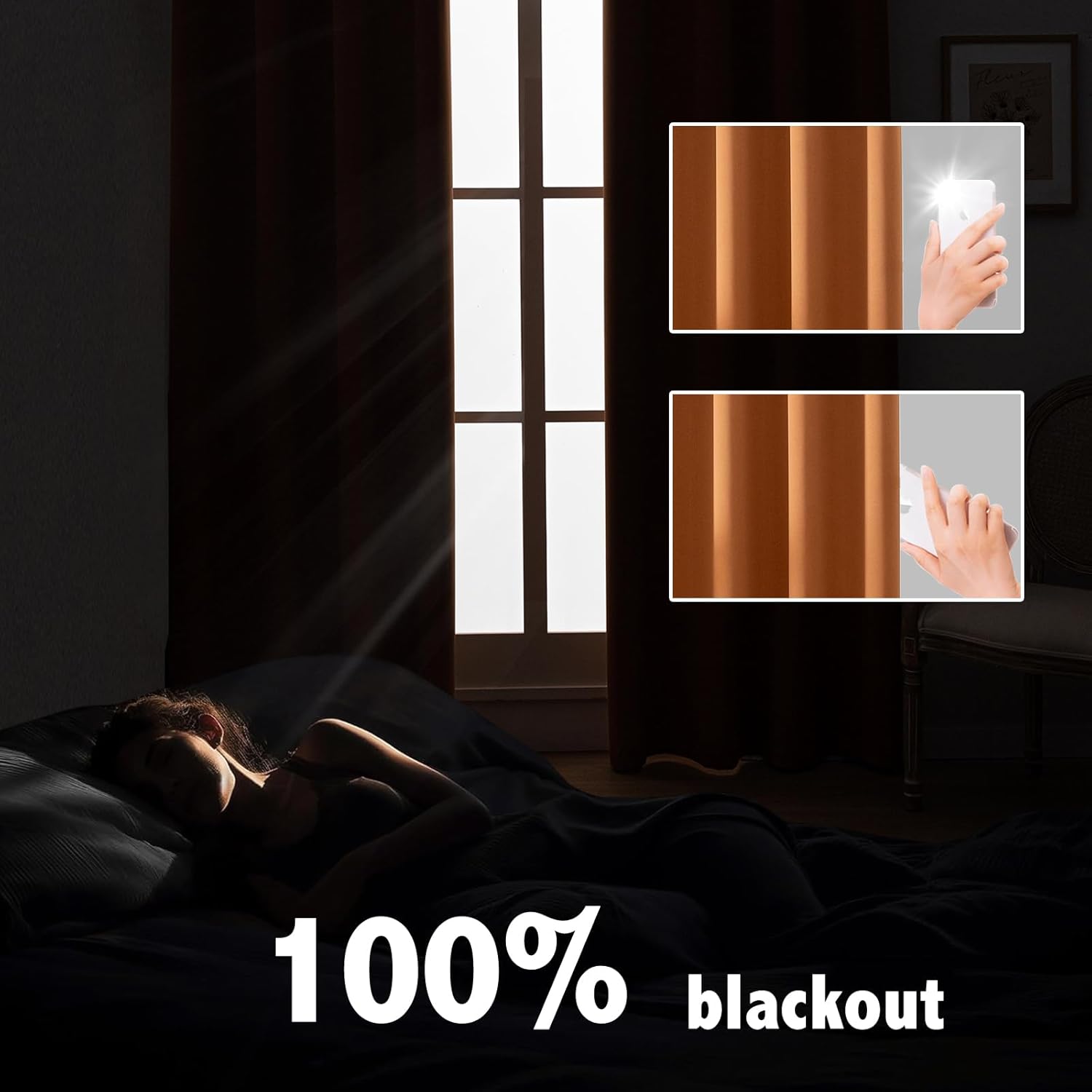 Anytime 100% Blackout Curtain Set, Thermal Insulated & Energy Efficiency Window Draperies for Guest Room, Full Shading Panels for Shift Worker and Light Sleepers(Orange, 2 Panels, 52W x 120L)