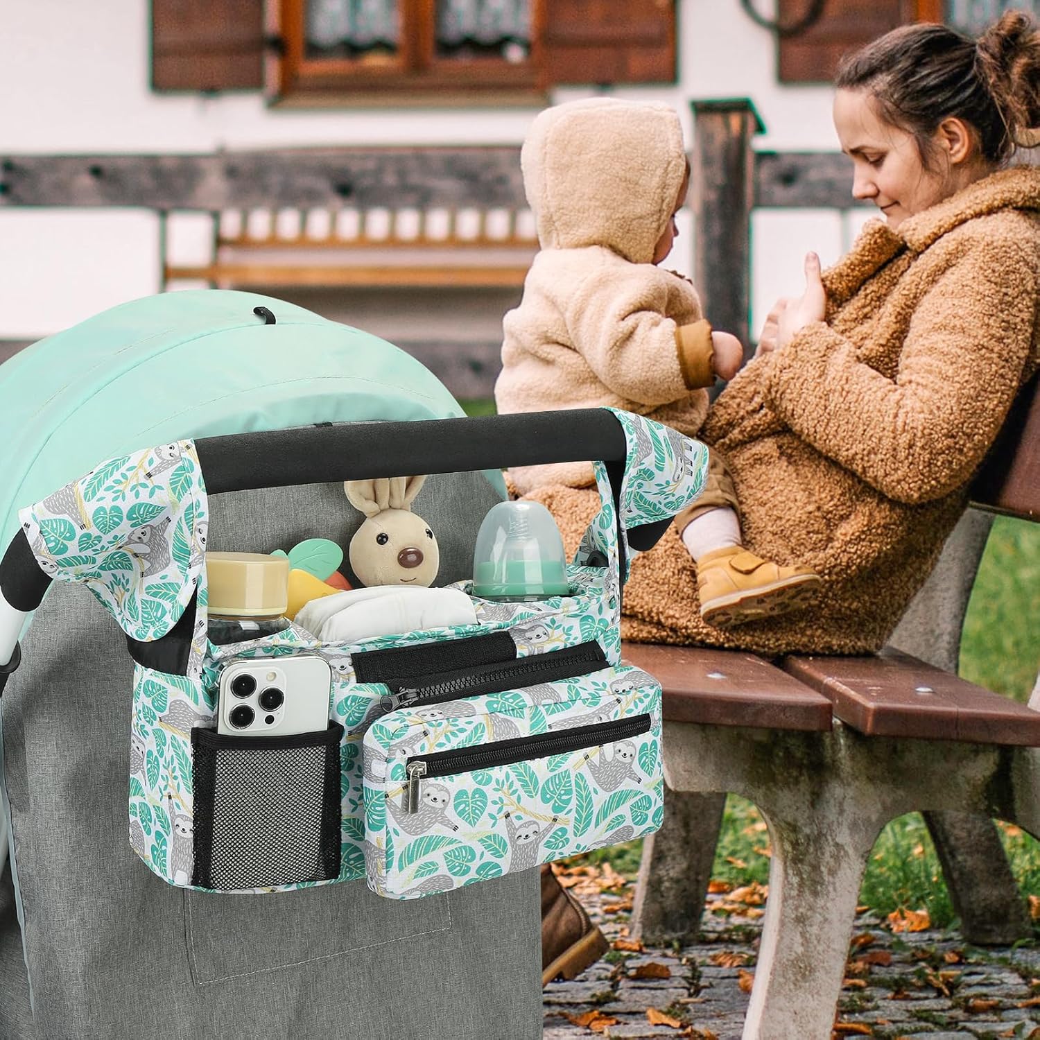 - Multiple Usage Methods : It can be hung as a stroller cup holder organizer on the stroller. When you don't need to use a stroller, you can also install the accompanying strap and carry this organizer bag for easy outing.