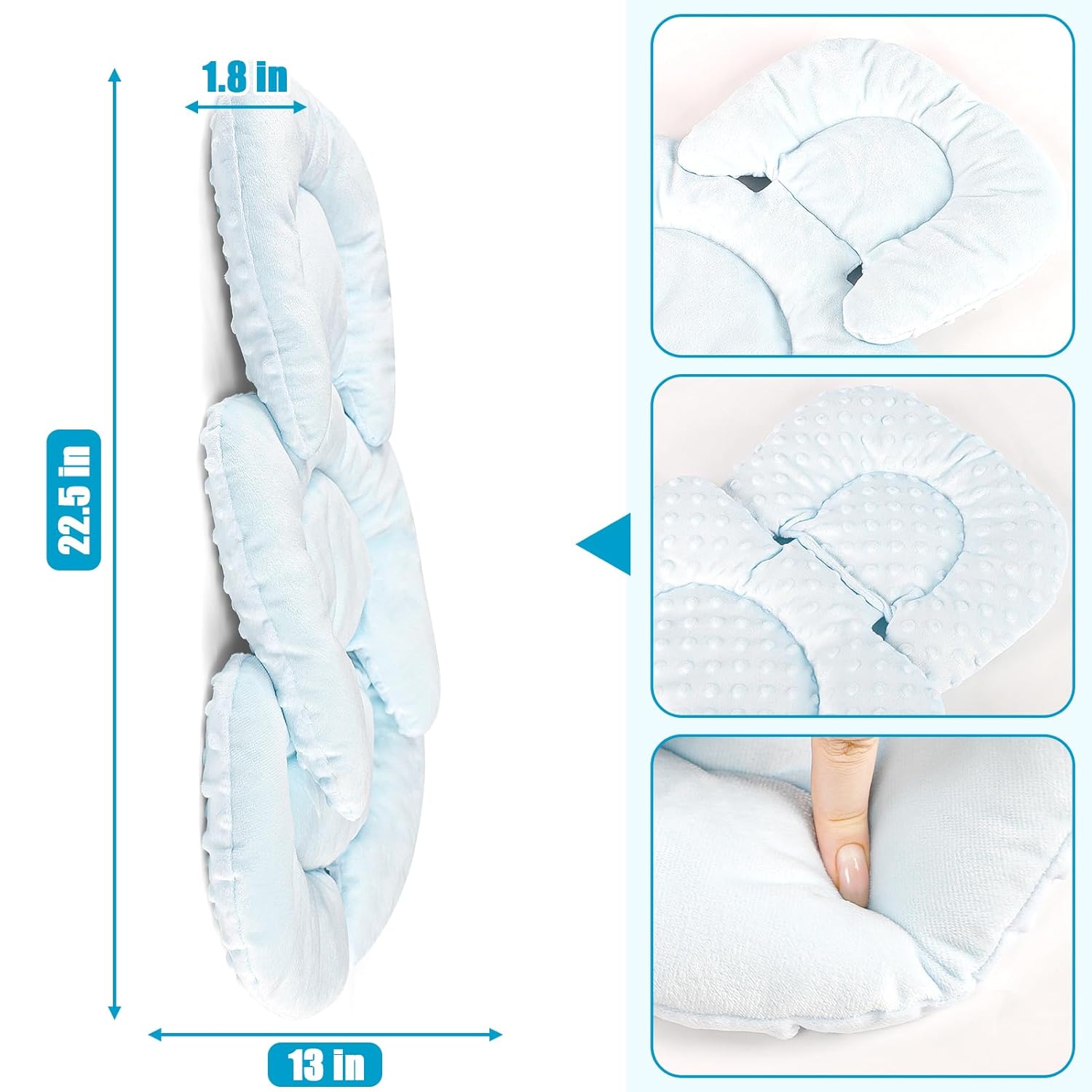- Double-sided Use: The front and back of the baby car seat cushion are made of soft plush fabric and 3D fabric respectively, you can choose one side