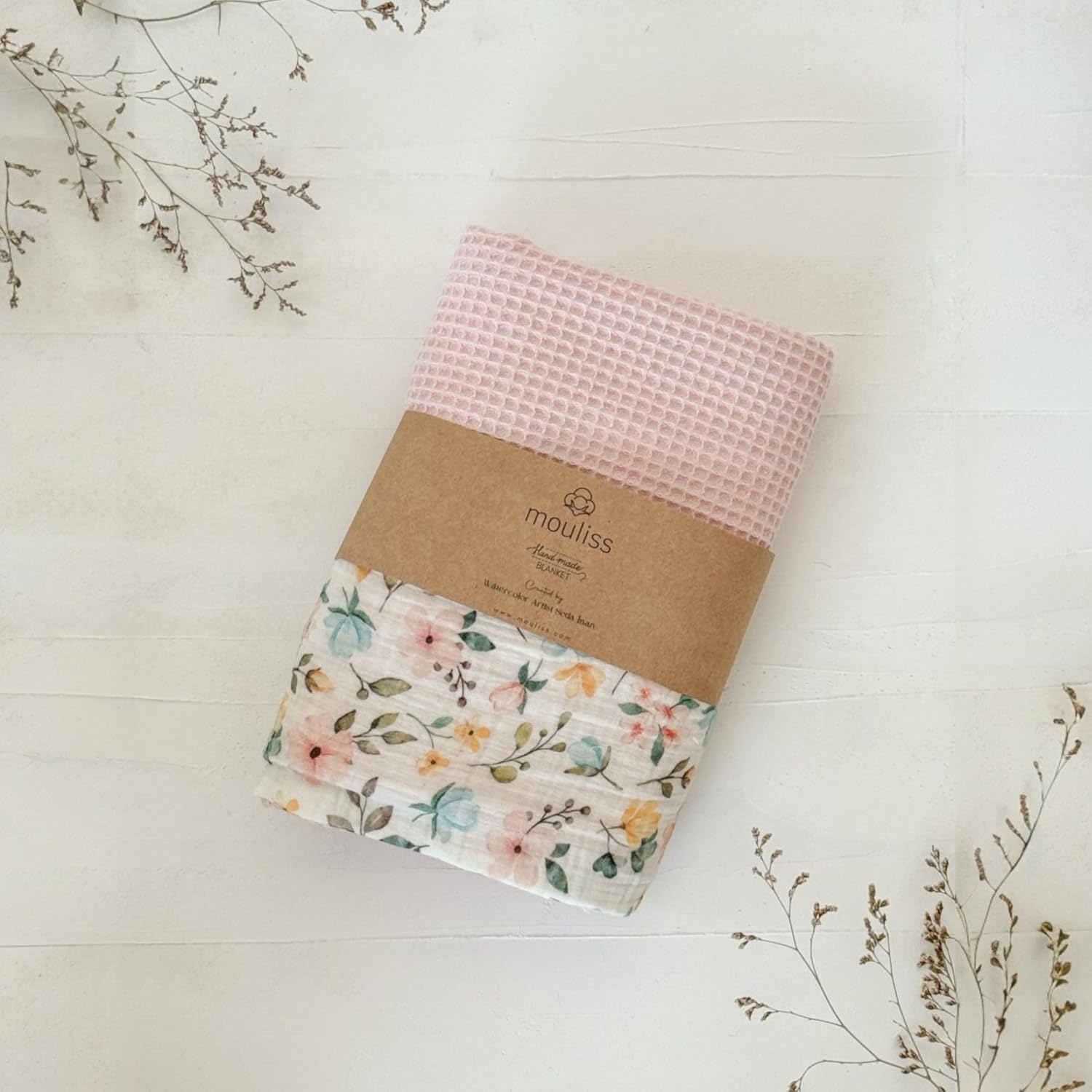 - ULTRA-SOFT ORGANIC COMFORT - Wrap your baby in the gentle embrace of our waffle baby blanket, crafted from 100% organic cotton, this floral print blanket offers a breathable and soothing touch against delicate newborn skin, ensuring a cozy and peaceful rest.