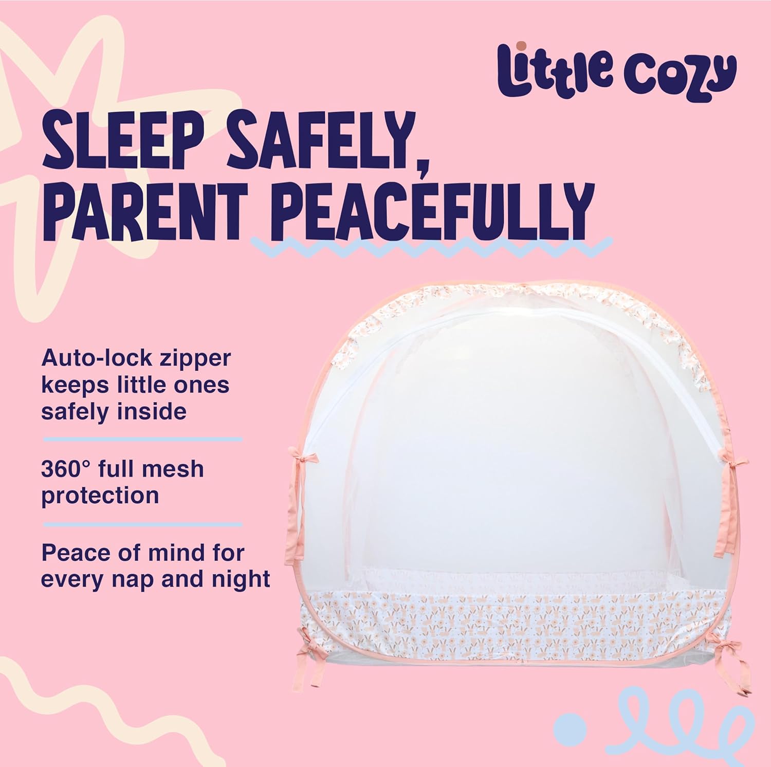 - Spacious Fit – Perfect for Standard Cribs – Fully open, this tent measures 27.55" W x 51.18" L x 55.11" H, making it ideal for most standard-size cribs. Offers generous headroom and interior space, so your baby has room to sit, play, and sleep comfortably.
