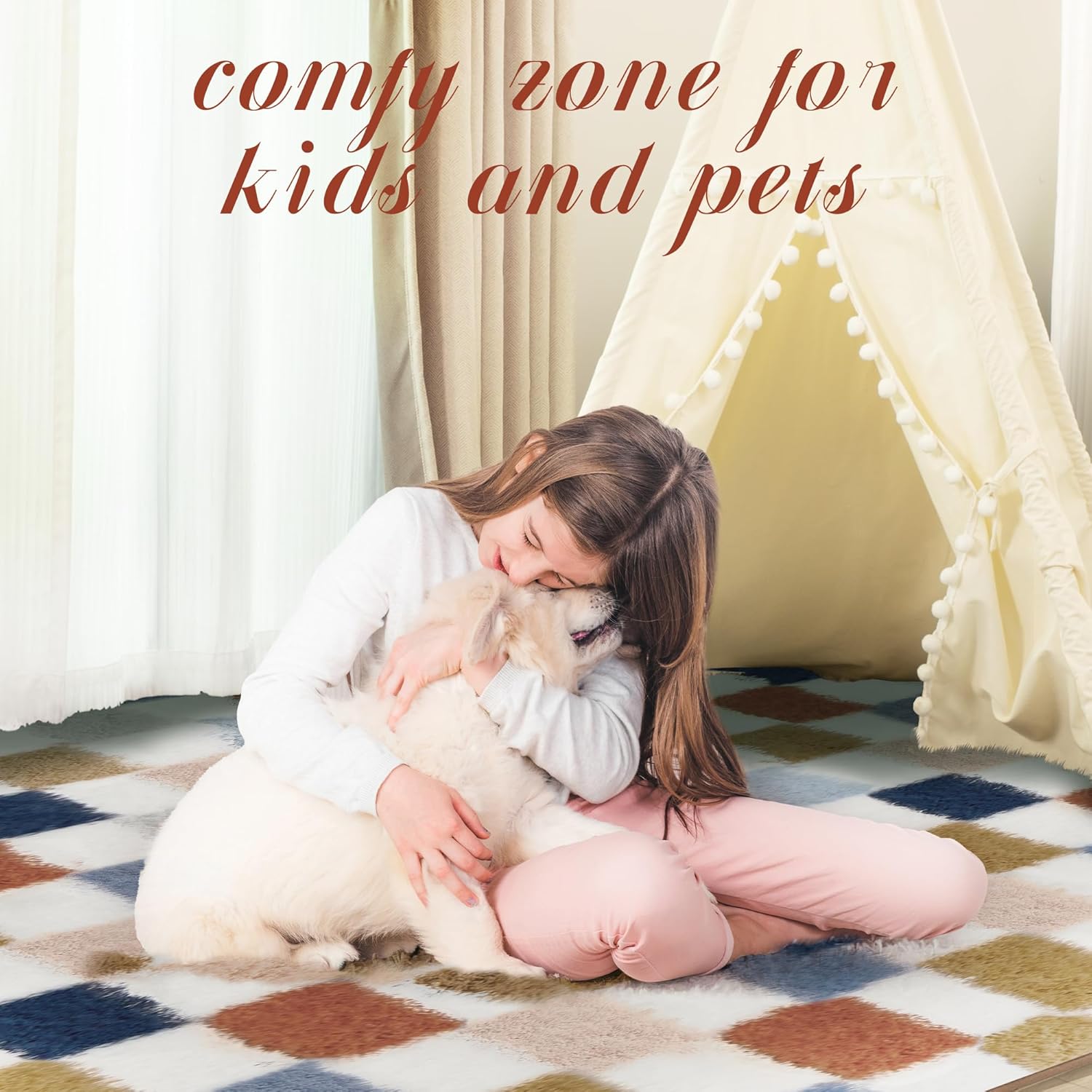 Super Soft Rug for Bedroom, 6x9 Ft Rainbow Area Rug Classic Checkered Shaggy Rug Anti-Skid High Pile Soft Fluffy Fuzzy Carpet for Living Room Bedroom Kids Room Nursery, Dorm Home Decor