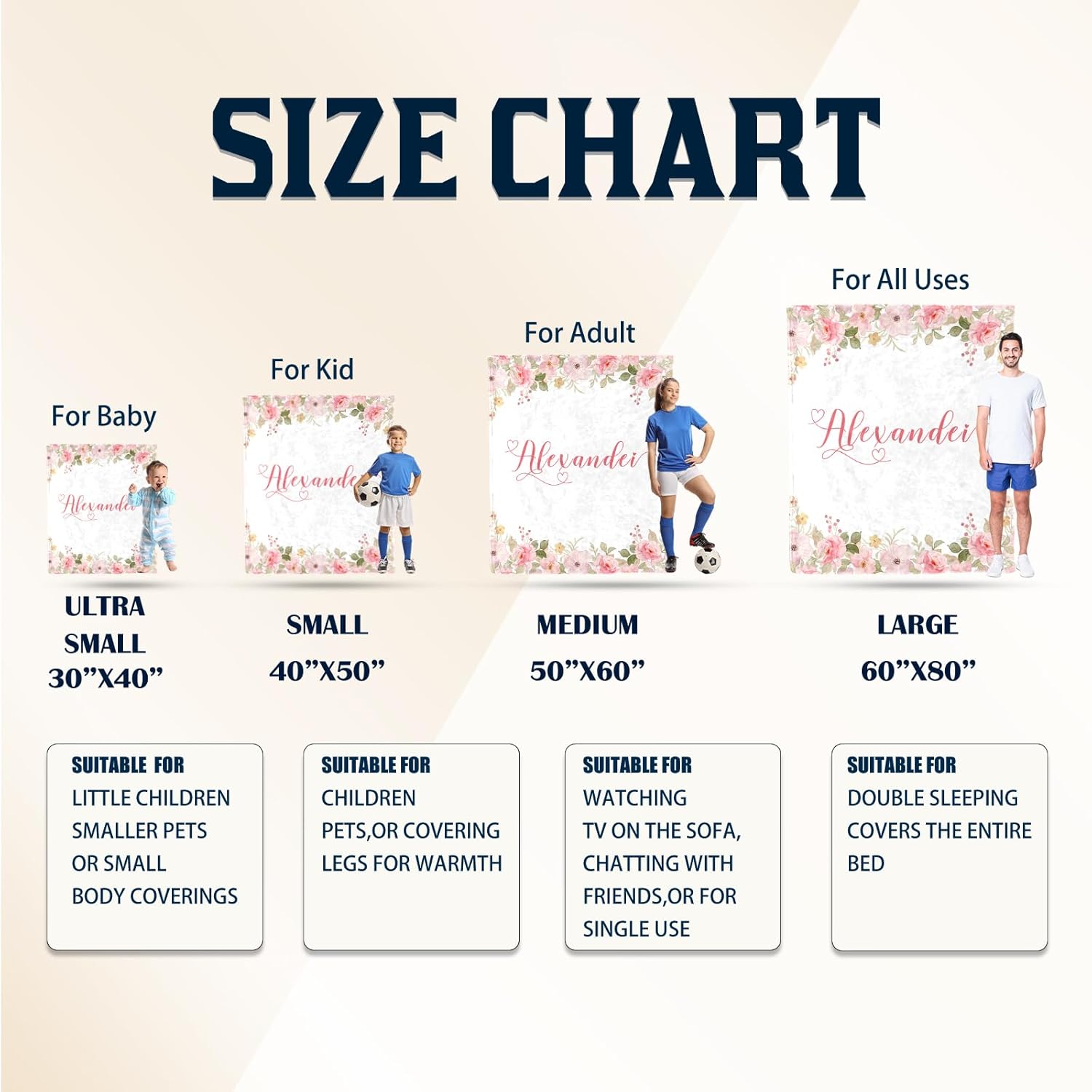 - Multiple Sizes & Colors Baby Blanket -- custom name blanket are available in 5 colors and 4 sizes: 30"x40" , 40"x50" , 50"x60" (single beds), 60"x80" (family movie nights).Select your loved one’s favorite shade to create a treasured keepsake that infuses their world with color. Thoughtfully crafted for both gifting and everyday cuddles, these blankets grow with your child while keeping memories vivid wash after wash.