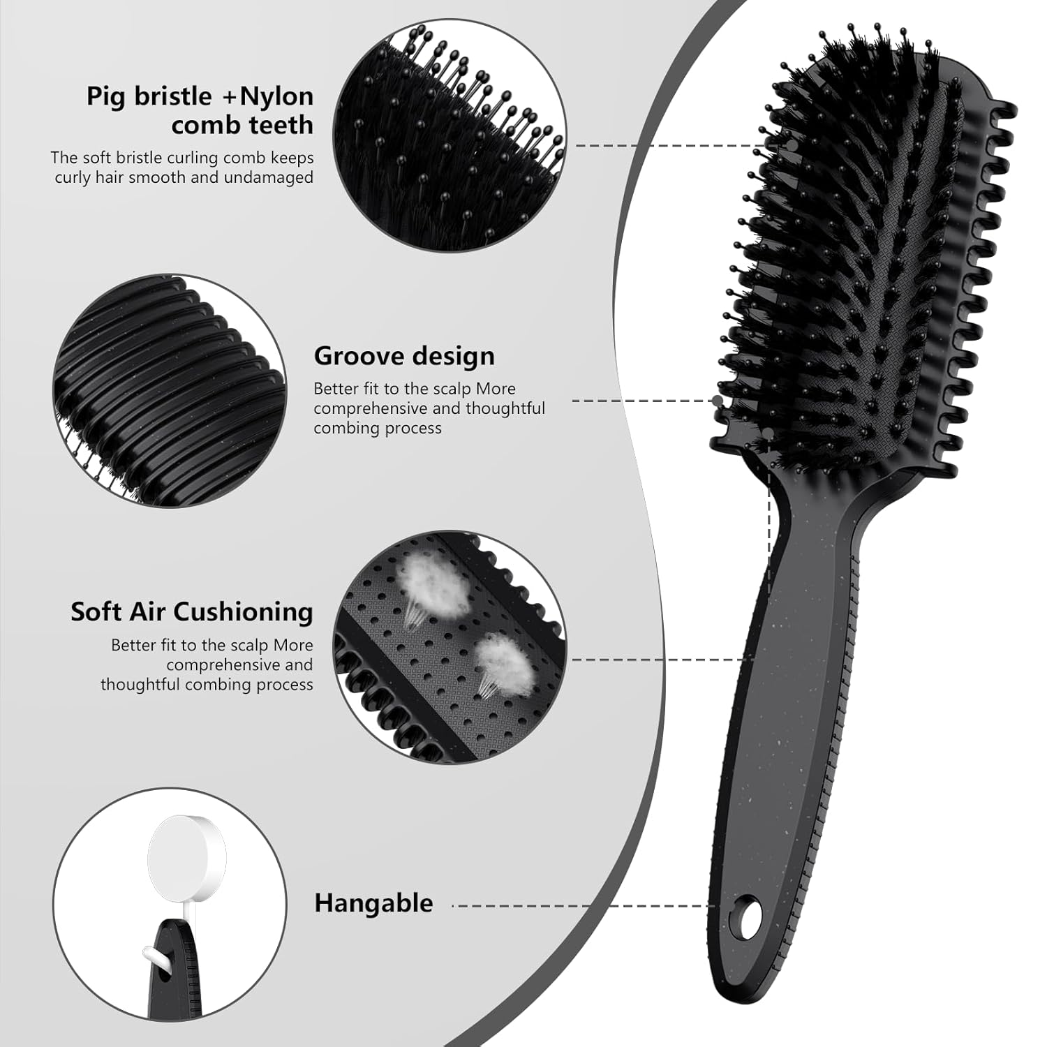 Curl Defining Brush, Curly Hair Brush, Slick Back Hair Brush, For Combing and Shaping Curls in All Hairstyles to Reduce Pulling (Black)