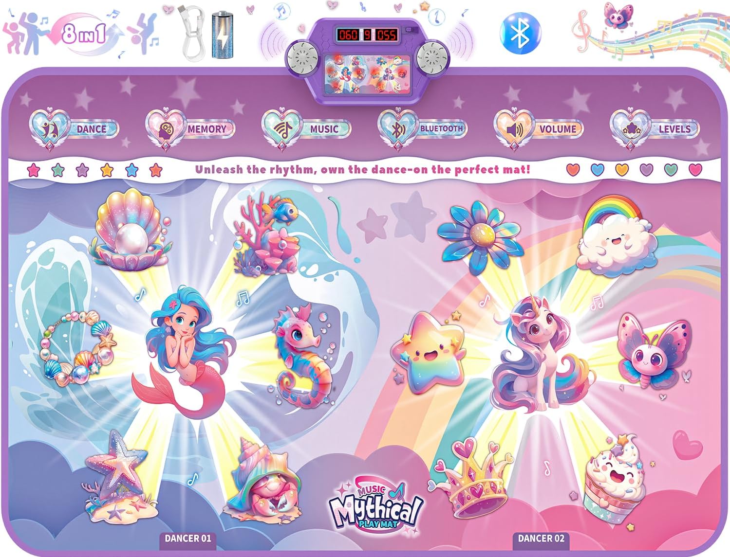 - Double Dance Mat for kids ages 4-8 Charging & Bluetooth Style:Upgraded with USB charging, this dance mat extends battery life by 30% vs others kids dance mat, allowing over 4 hours of fun every time. Use phones, tablets, or PCs to connect wireless Bluetooth mode, while built-in songs of dance mats for girls 8-12 dance to their favorite tunes.