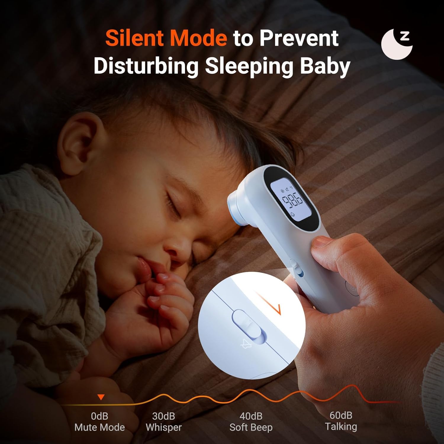 - User-Friendly Design: Our baby thermometer is lightweight and ergonomic. Measure from 1.18 in away, aligning with the center of the eyebrows, no contact required. Enjoy features like memory storage, silent mode, and auto-off for added convenience.