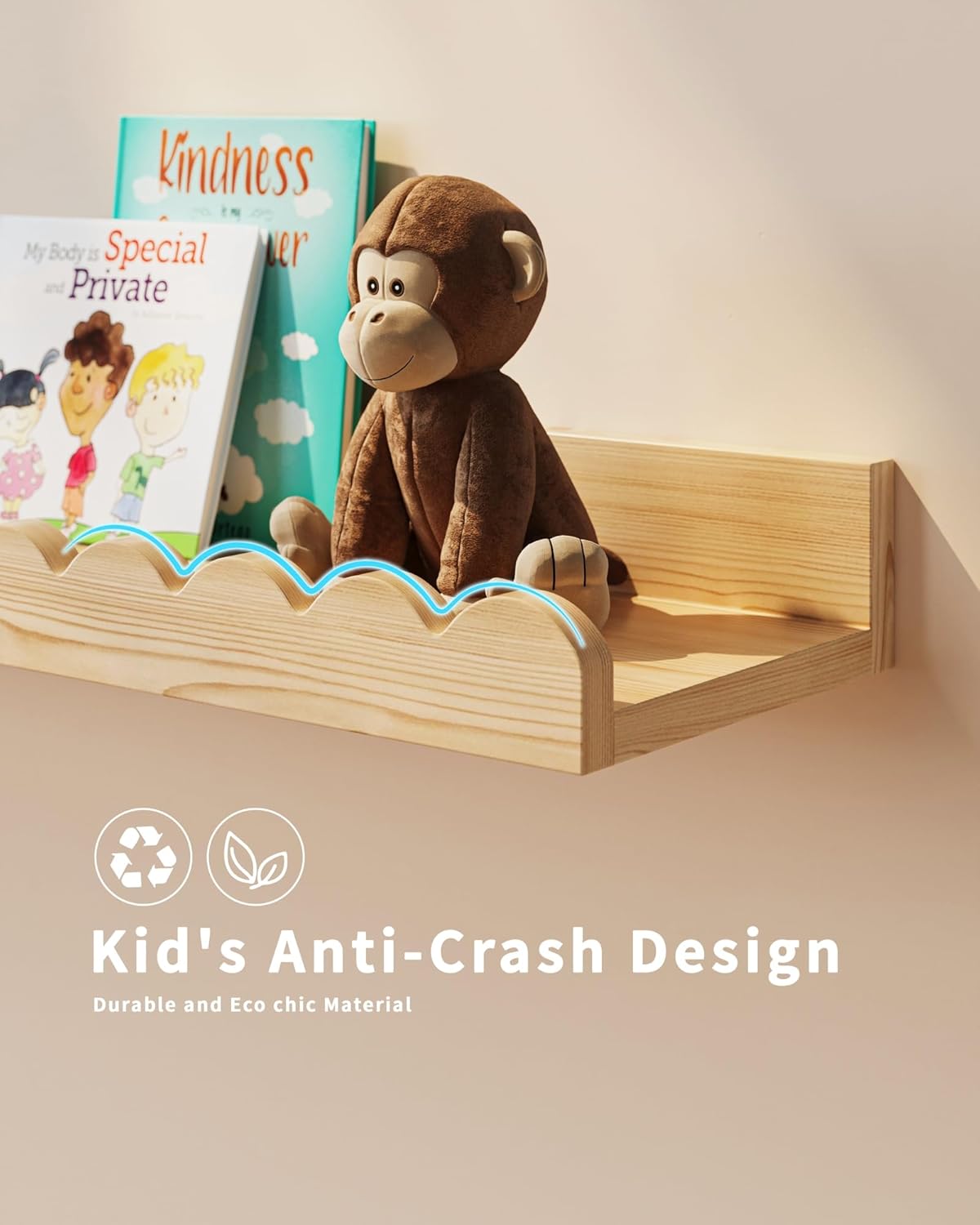 - High-Quality Wood: Crafted from premium hardwood, our wall-mounted bookshelf ensures durability and a long-lasting finish, making it a reliable addition to any child's room