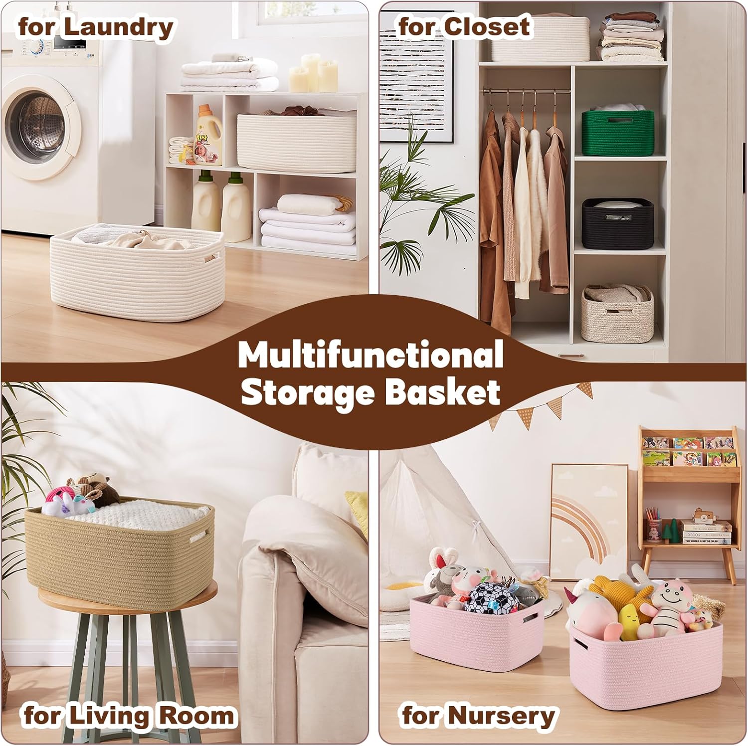 OIAHOMY Storage Basket for Shelves, Closet Cube Storage Bins Baskets for Clothes Blanket Towels, Baby Nursery, Toy Baskets Box, Woven Rope Basket, 17.72*12.99*7.87 IN, 2 Packs Olive Green