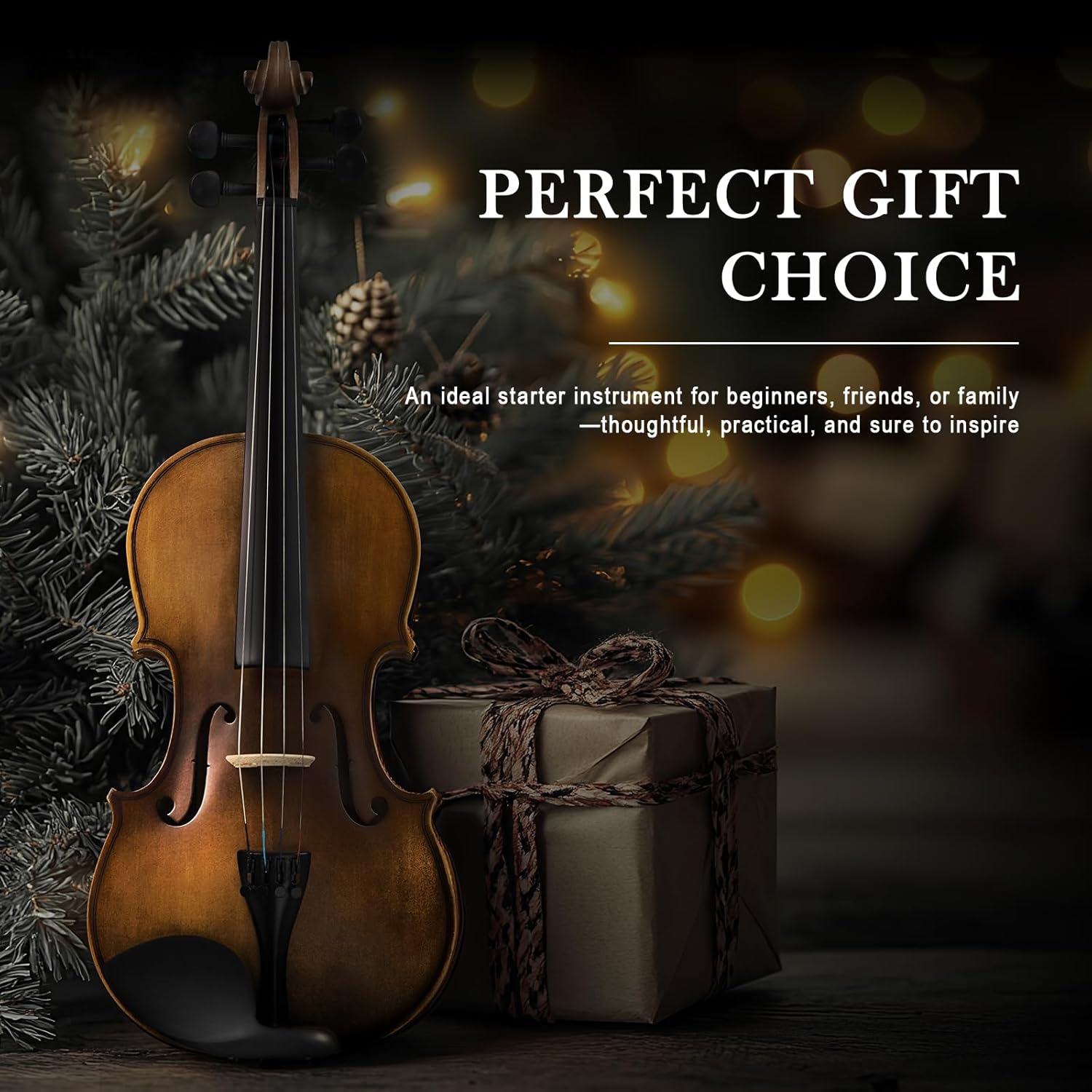 SONICAKE Violin 4/4 Full Size Set, Fiddle Solidwood for Beginners Adults, Acoustic Violin with Hard Case, Shoulder Rest, Rosin, Two Bows, Clip-on Tuner and Extra Strings, QVL-01