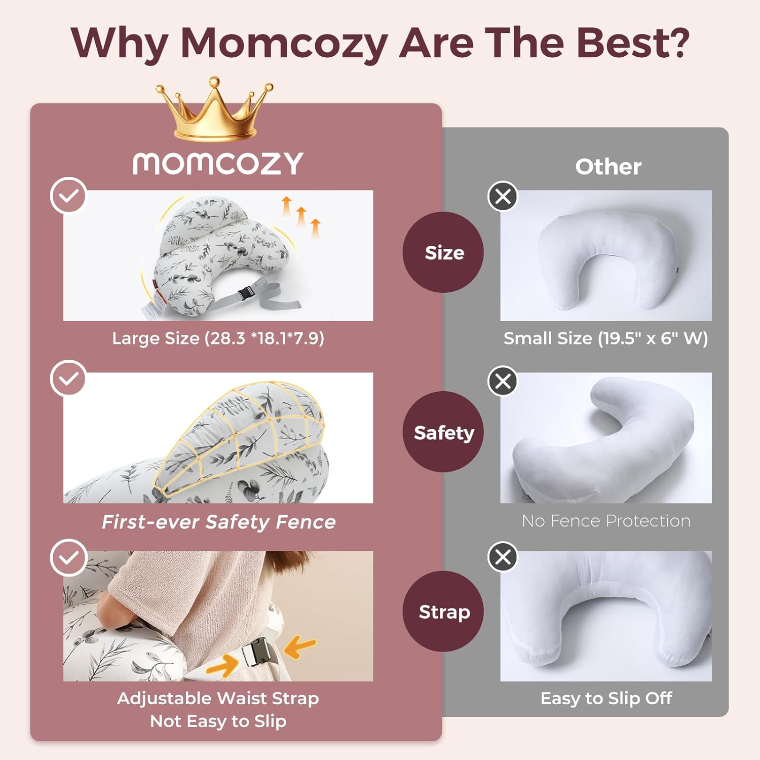 Momcozy Pioneering Safety Fence Nursing Pillow for Breastfeeding- Wider Feeding Pillows for More Support for Mom & Baby- Easier Nursing & Hand Free- Fit for All, Removable Cotton Cover