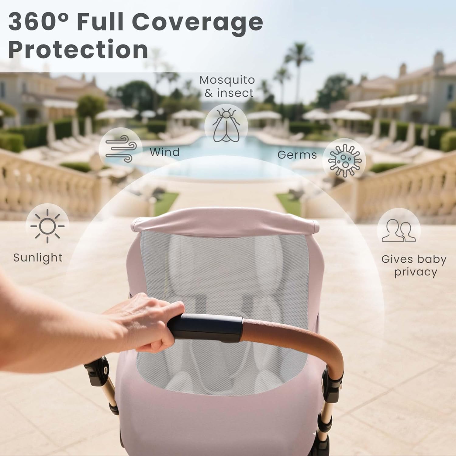 - Built-In Mesh Window Design: This smart dual-layer design features a breathable mesh window for ventilation and visibility, while shielding your baby from the sun, insects, and prying eyes. You can easily check on your little one through the carseat cover’s mesh panel without disturbing their nap—making it an ideal car seat cover for summer