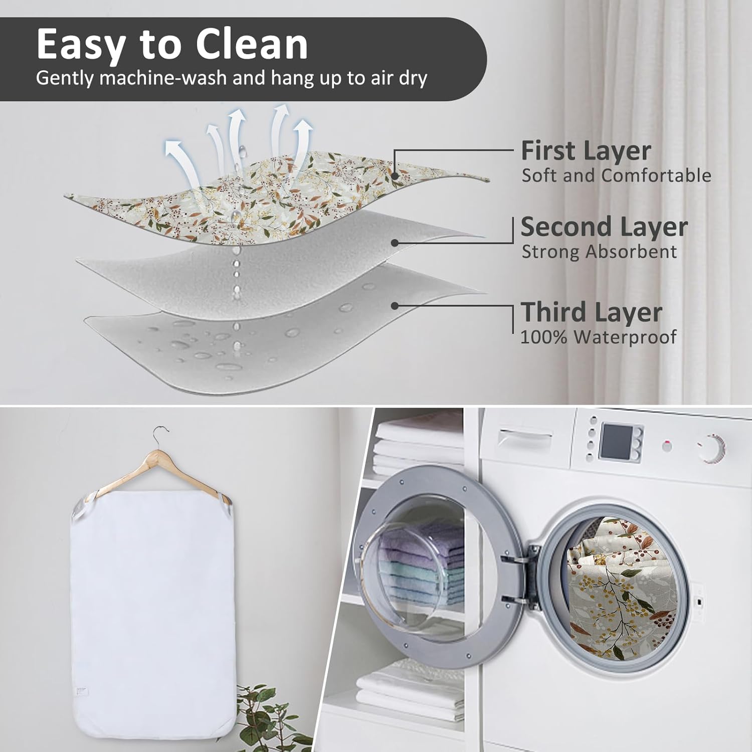 Baby Diaper Changing Pad, 21 5/8" x 31.5" Waterproof Changing Pad Liners - Reusable Soft and Absorbent Portable Changing Mat(Leaf1PCS)