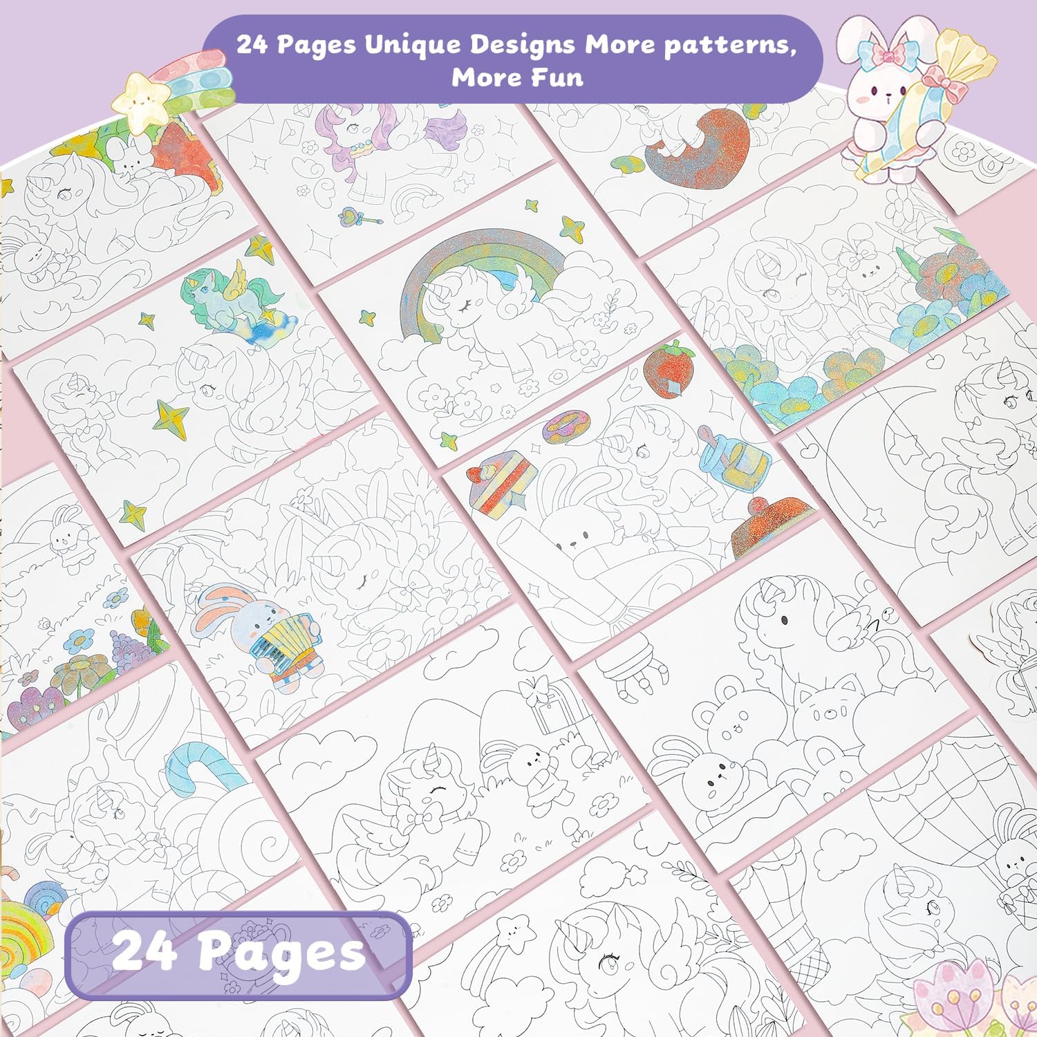 - Includes 24 Unicorn-Themed Pages with Multiple Ways to Play. Say goodbye to traditional coloring! This book includes 24 pages of princess-themed illustrations and unlocks multiple creative uses—like coloring pages, journaling, postcards, quiet books, reusable stickers, and bookmarks.