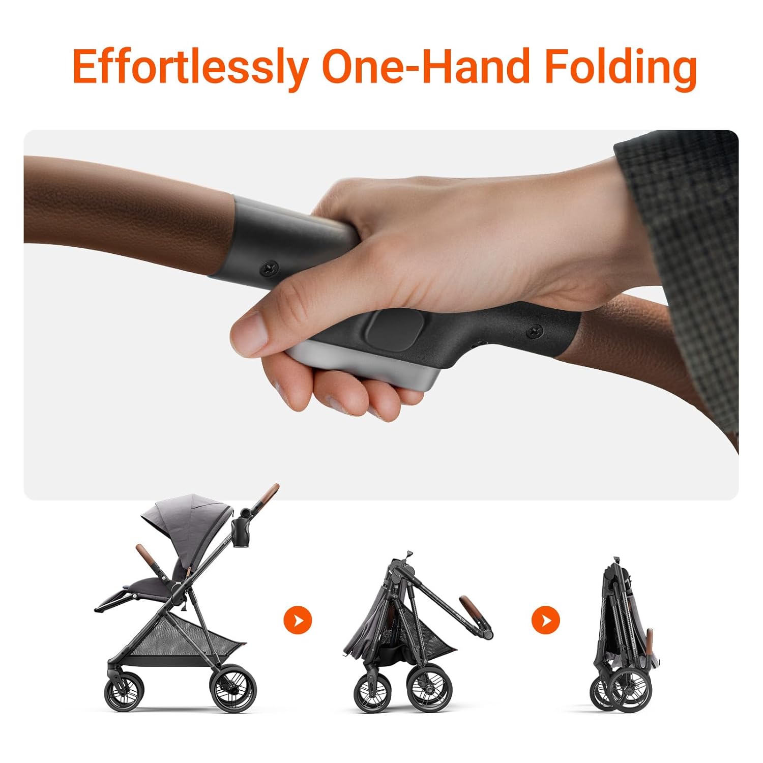 Air Lux Baby Stroller with Carbon Fiber Frame, One-Hand Fold & Reversible Seat, Magnetic 5-Pt Harness, Car Seat Adapter, 15.8lbs, Cinder