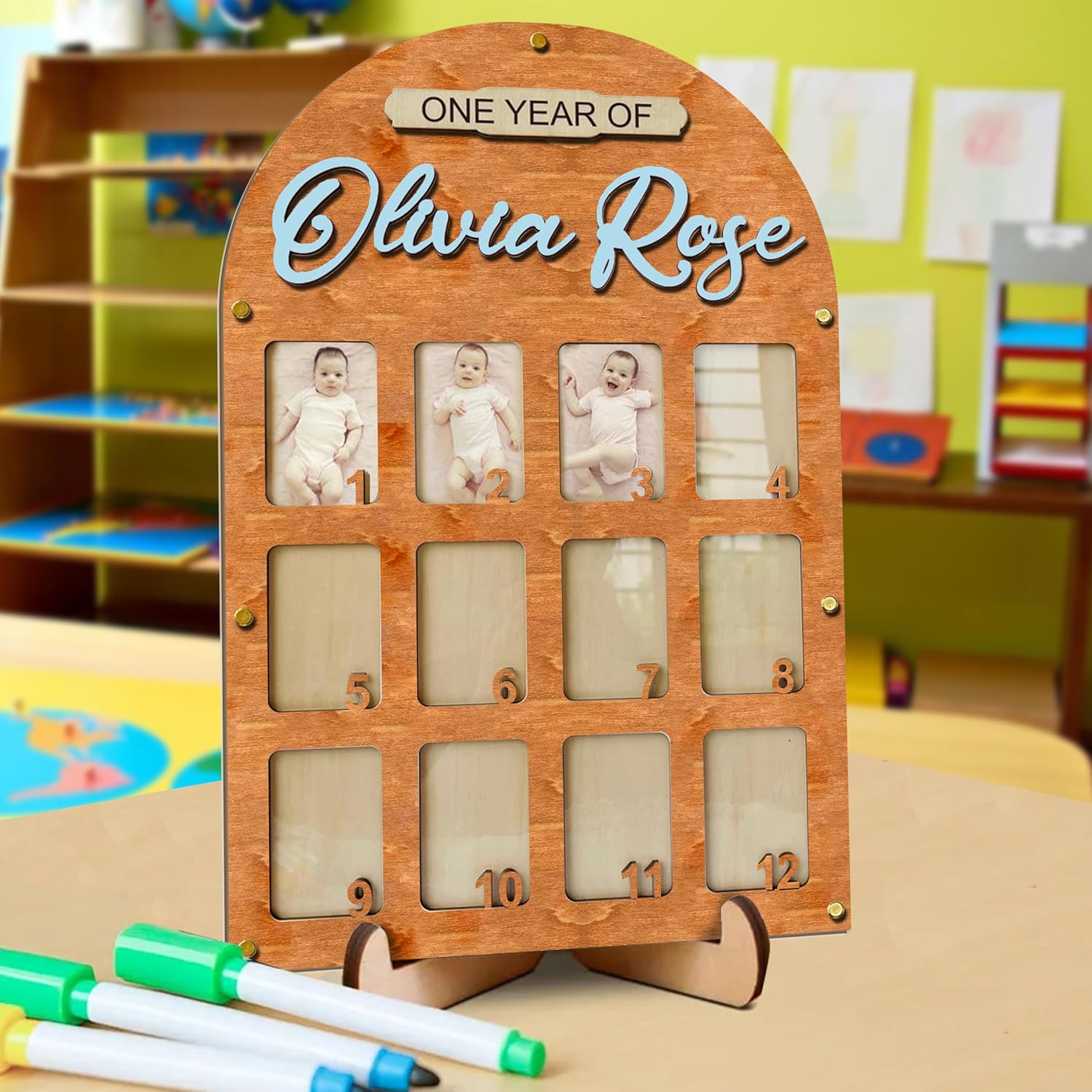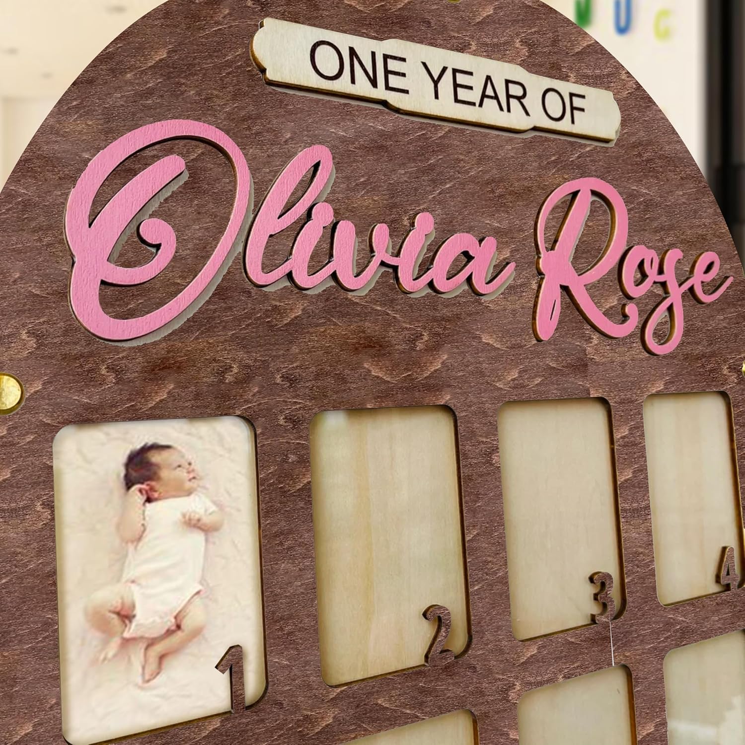 - Our my first year frame features a unique design with hook and point stickers for easy hanging and decoration. Made from high-quality, thick wood, this 12 Month Photo Frame offers lasting durability. Let your baby's photos shine in these baby milestone board, babys first year photo frame, 1-12 months baby milestone picture frame, baby first year frame and my first year picture frame, 12 months photo frame, first year baby frame and my first year picture frame 12 months.
