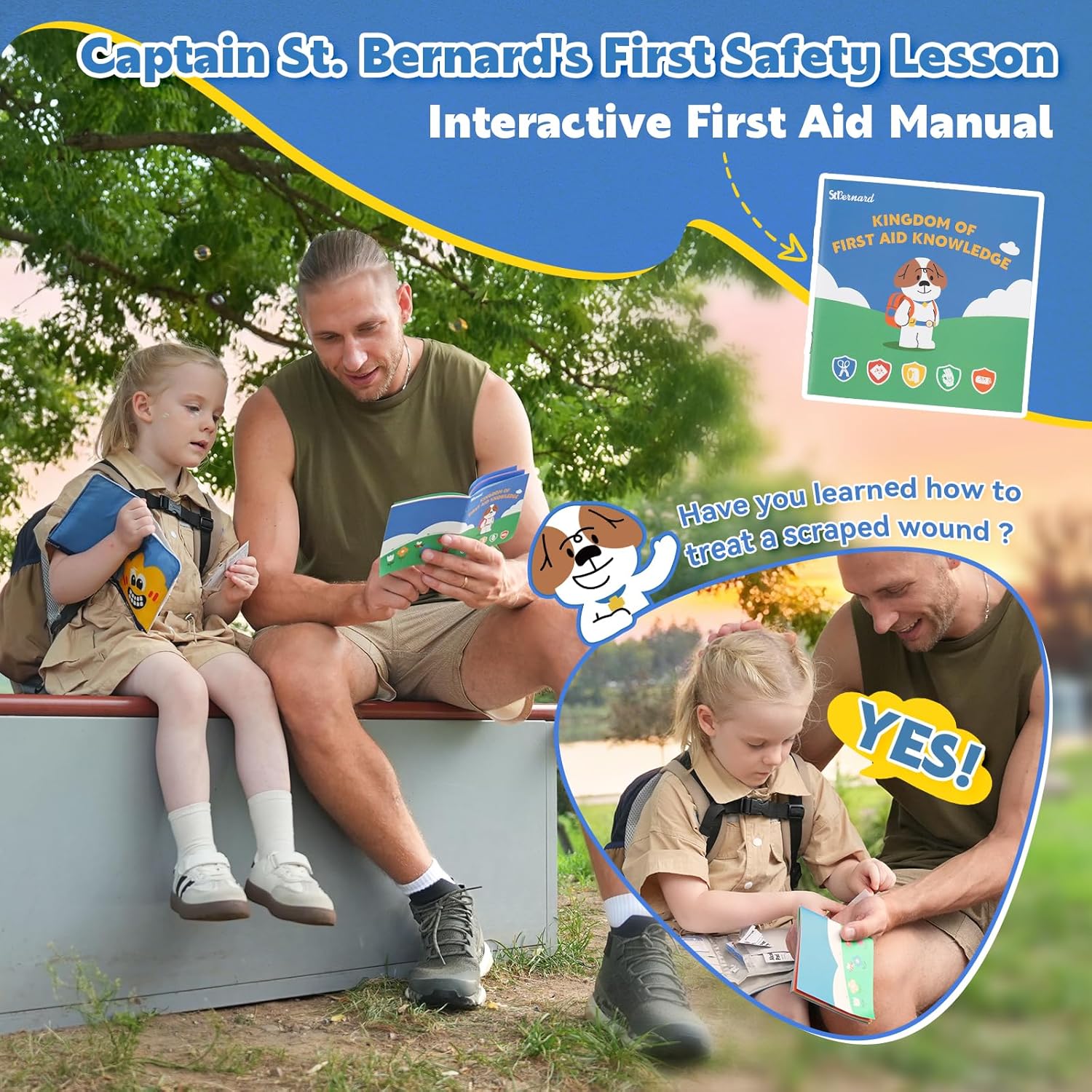 - š[[Captain St. Bernard Leads the First Lesson] Meet Captain St. Bernardāthe friendly pup on our logo, guiding kids through every page of the cartoon manual. This beloved mascot turns first aid into a fun adventure, teaching little ones to stay calm and handle boo-boos step-by-step. More than a kit: itās their first safety class, led by your childās new favorite St. Bernard friend