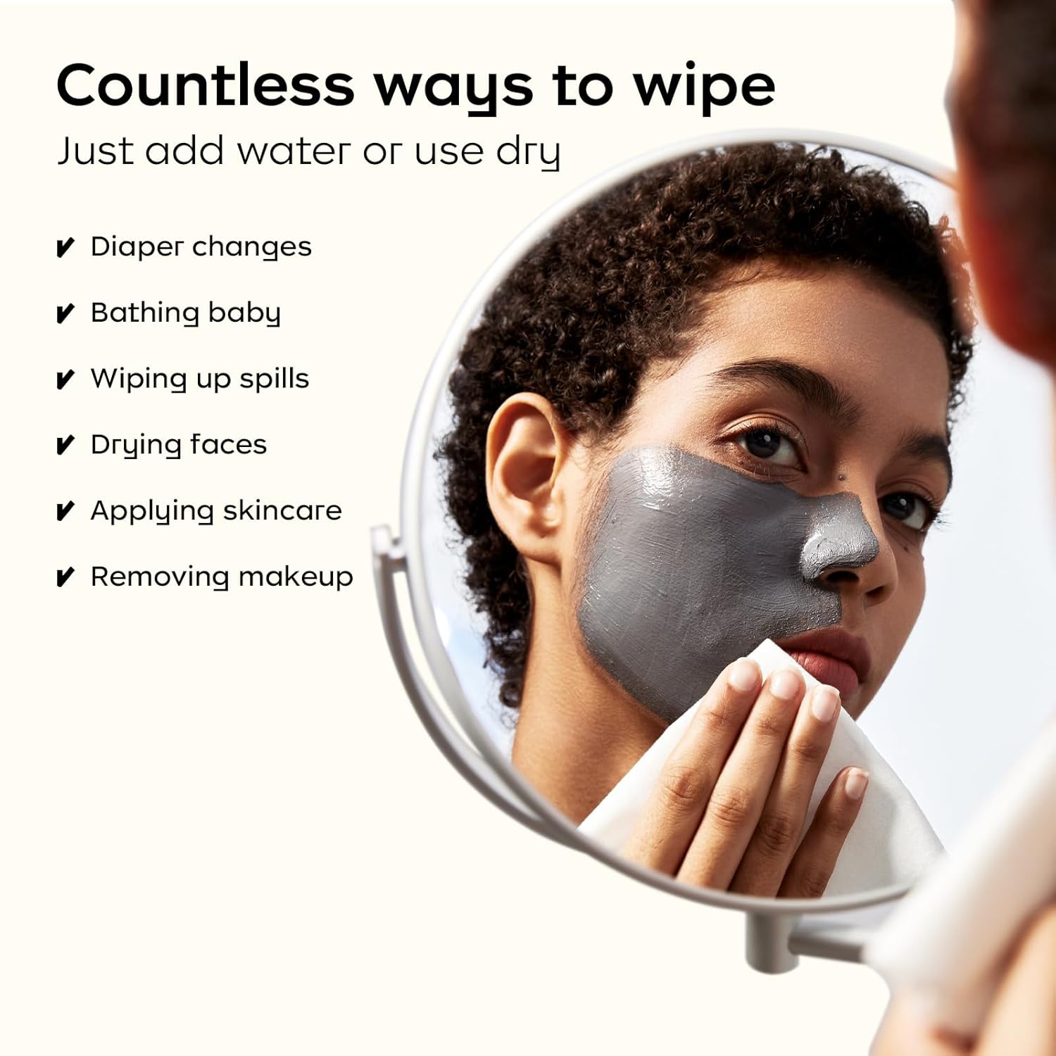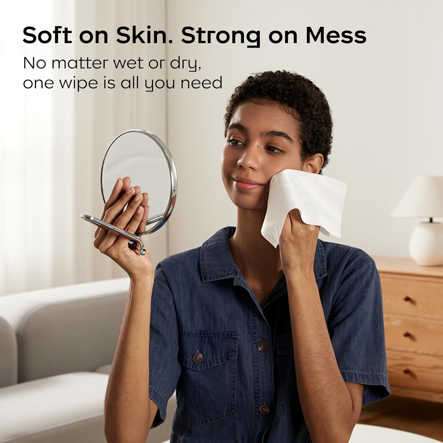 - WET & DRY DUAL USAGE: Use dry for feather-light comfort, or add water for extra cleaning power—our wipes combine the softness of tissue with the strength of cloth, use dry to refresh tiny hands or sensitive skin; add water for custom cleansing anytime, anywhere.