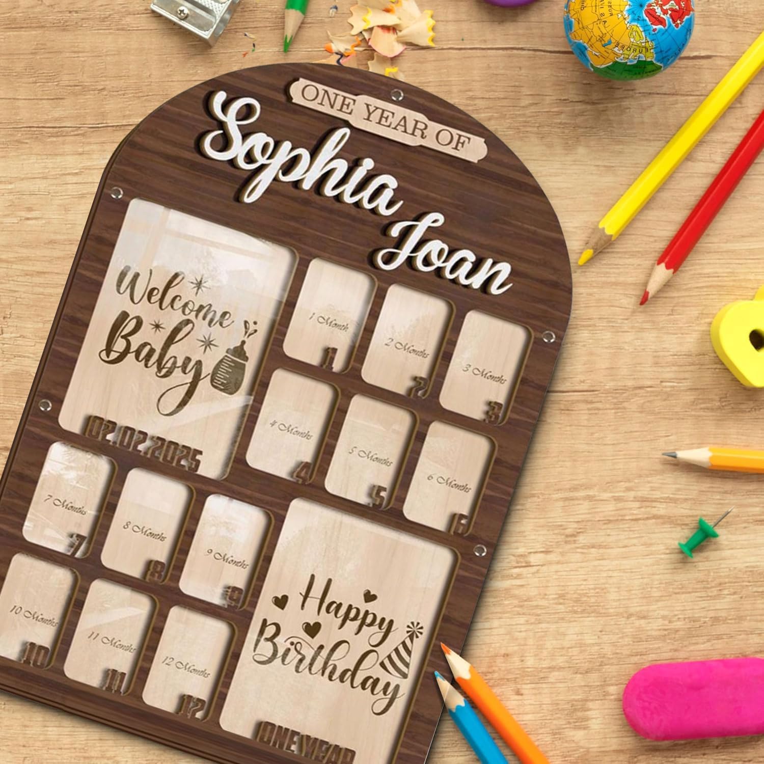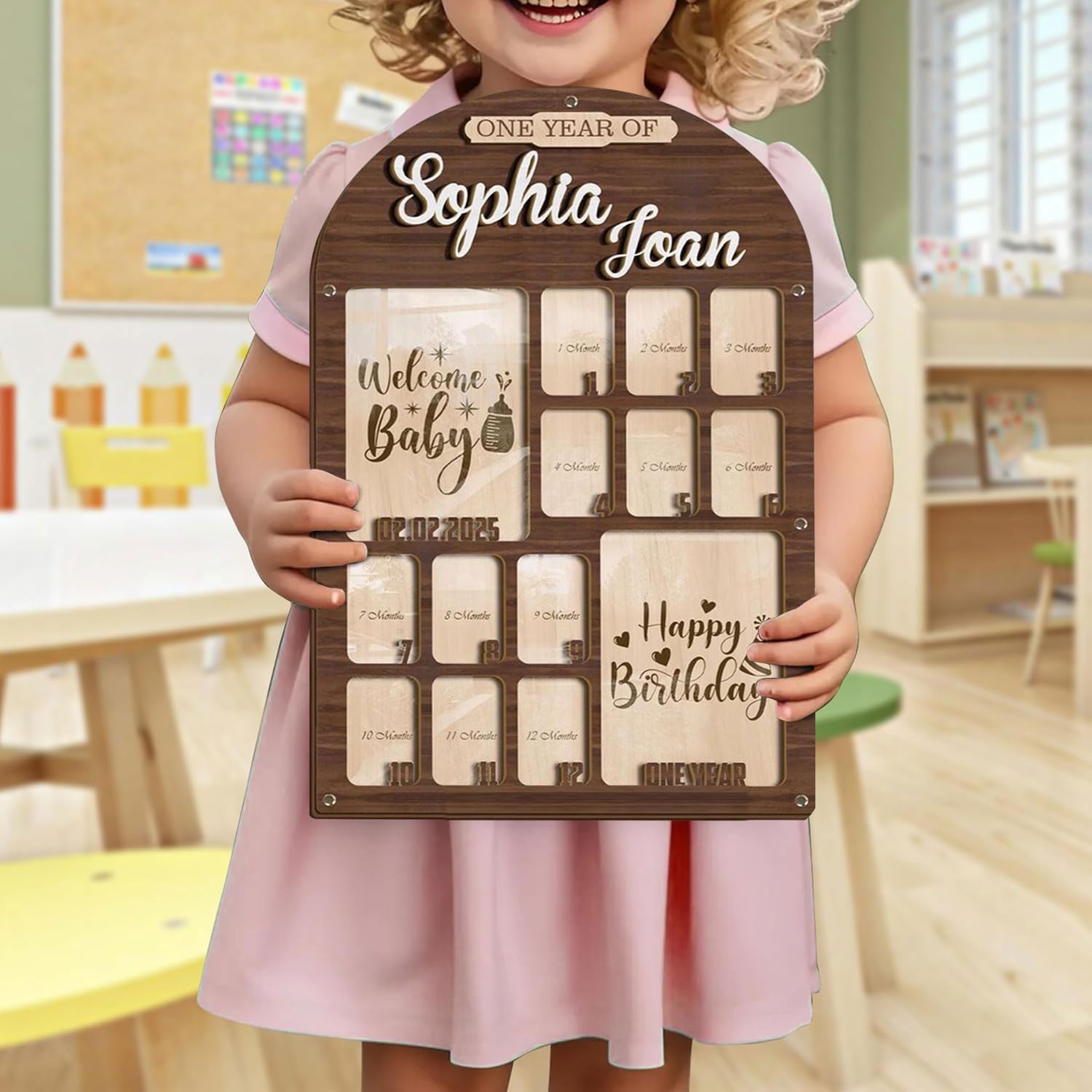 - Our baby's first year picture frame preserves your photographs, cards, and cherished memories with a clear view. This 12 Month babys first year is ideal for showcasing one year of baby photo board, Whether you need a first birthday photo board or a first year frame, this frame is ideal for displaying your baby's monthly photos. A wonderful baby keepsake frame, it serves as a memorable keepsake for your baby's first year, making it an essential part of your first year photo board.