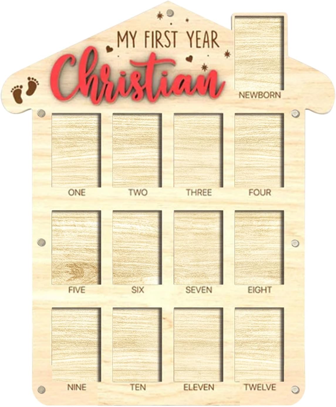 - Our my first year frame features a unique design with hook and point stickers for easy hanging and decoration. Made from high-quality, thick wood, this 12 Month Photo Frame offers lasting durability. Let your baby's photos shine in these baby milestone board, babys first year photo frame, 1-12 months baby milestone picture frame, baby first year frame and my first year picture frame, 12 months photo frame, first year baby frame and my first year picture frame 12 months.