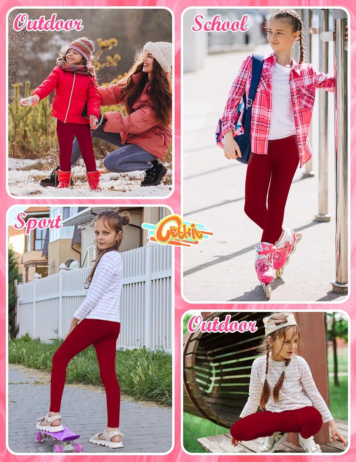 - Leggings for Toddler Girls, Ankle Length Cotton Girls Leggings Dark red, 2T