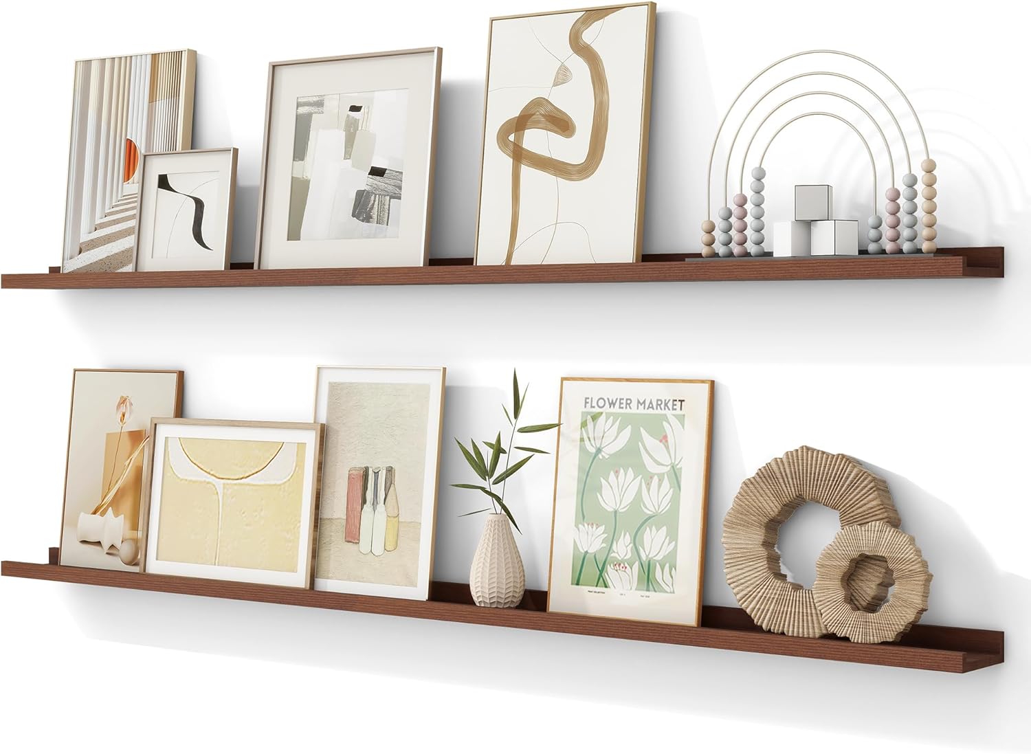 - Dual Picture Frame Shelves: Customize Your Space with Our Dual long picture ledge shelf. This set includes two versatile picture ledge shelf, perfect for personalizing your home. Whether you're creating a family photo gallery in the hallway or showcasing your collectibles, these ledge shelves provide the ideal solution. Ensuring strength and reliability for all your display needs