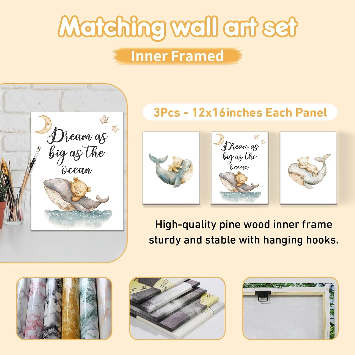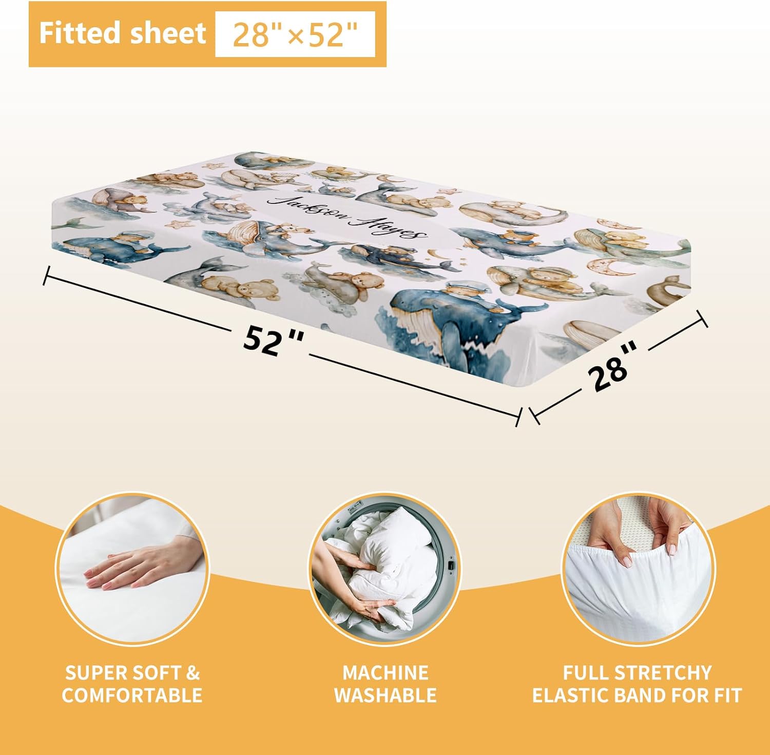 Personalized Baby Bedding Set - 5 Pcs Custom Infants Bedding Set with Infant Name - Double Layer Nursery Crib Set for Girls Boys - Customized Gifts for Toddler Baby Shower - Whales and Bears